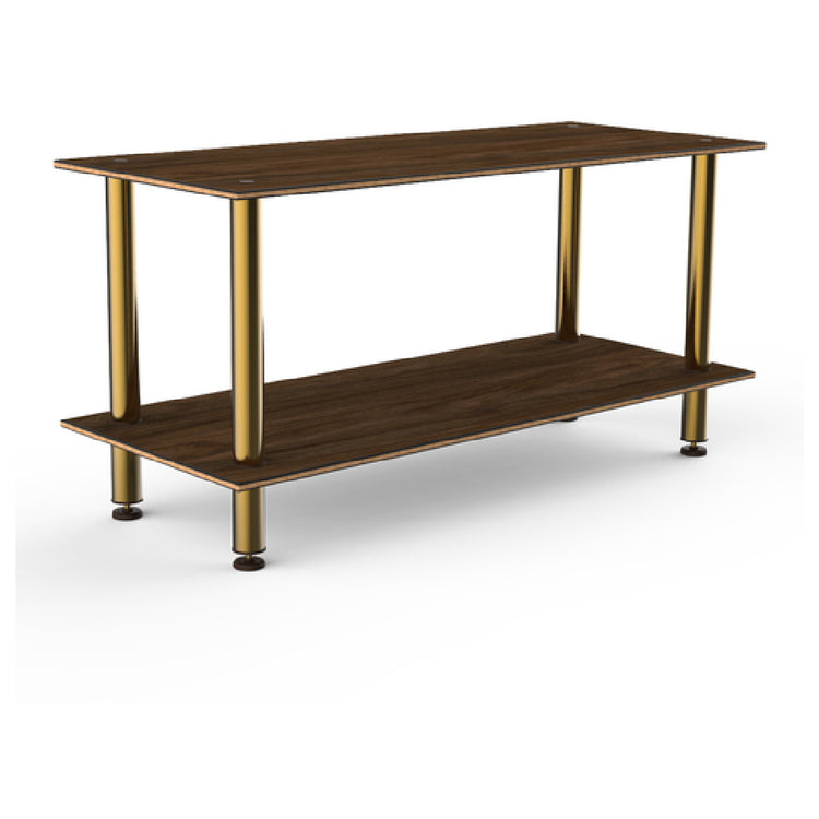 The Steelite MGCMDX01WBXF Mogogo Buffet Solutions Modular Serving Table - a 2-tier unit measuring 71" x 29-1/2" x 35"H - is designed to meet the diverse needs of the hospitality and catering industries. This large, rectangular serving table stands out with its Bengali mango wood BHP high pressure laminate surface, which offers a visually appealing and durable top supported by a bamboo core. The brushed brass legs not only add a touch of elegance but also provide sturdy support for the table's modular configuration. One of the notable features of the Mogogo Buffet Solutions Serving Table is its knockdown capability, which simplifies transportation and storage. This flexibility makes it an ideal choice for venues that require adaptable and efficient serving solutions. Whether catering to high-end events or casual gatherings, this serving table combines practicality with style, making it a valuable asset in various market segments. Each unit is packed individually, ensuring it reaches your venue in pristine condition. The Steelite MGCMDX01WBXF offers a blend of strength, functionality, and aesthetic appeal, making it a versatile centerpiece for any buffet or serving area.