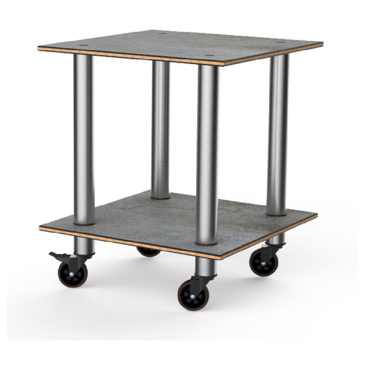 The Steelite MGCMDX03GSXW Mogogo Buffet Solutions Modular Serving Table is a versatile and innovative solution designed for professional catering and hospitality environments. This two-tier serving table features a compact square design, measuring 29-1/2 inches by 29-1/2 inches, with a height of 35 inches, making it an ideal choice for spaces with limited room yet requiring elegant presentation options. The table showcases a sophisticated grey slate BHP high-pressure laminate surface, complemented by a bamboo core top, offering a striking balance of durability and aesthetics. Supported by brushed stainless steel casters, this modular serving table is not only stable but also easily portable, allowing for flexible configurations in dynamic service settings. A standout feature of this product is its knockdown capability, facilitating efficient storage and transport when not in use. Designed to meet the diverse needs of the food service industry, this serving table is packed individually, ensuring quality and ease of distribution. The Steelite MGCMDX03GSXW represents the perfect blend of practicality and style, making it an essential addition to banquet halls, hotels, and catering services that prioritize exceptional presentation and functionality.