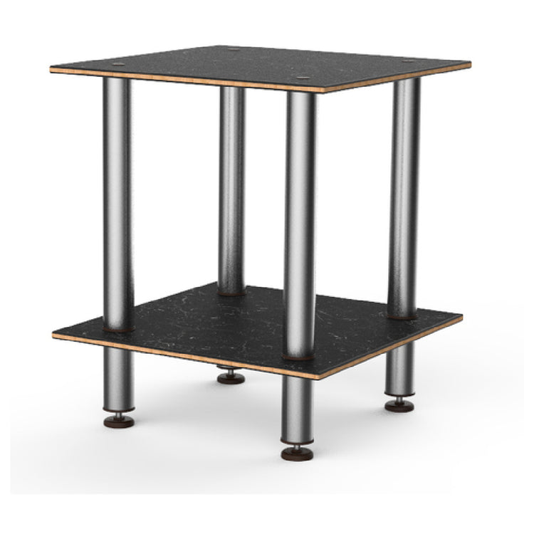 The Steelite MGCMDX03MSXF Mogogo Buffet Solutions Modular Serving Table is a versatile two-tier unit, meticulously crafted to enrich any dining environment with its compact yet functional design. Measuring 29-1/2" by 29-1/2" and standing at a height of 35", this square serving table is ideal for both intimate and larger settings. The top boasts Nero Marquina marble BHP high-pressure laminate with a durable bamboo core, blending elegance with resilience for frequent use. Complemented by brushed stainless steel legs, it ensures stability and a sleek modern aesthetic. This knockdown table is easy to assemble and disassemble, making it highly portable and convenient for dynamic catering events. Packaged individually, it serves as a perfect choice for food service providers, hospitality venues, and event planners seeking a reliable and stylish serving solution. Its modular nature allows for customizable configurations, catering to various spatial and functional requirements, thus enhancing the buffet presentation experience across different market segments within the industry. Designed by Steelite International, the table embodies a perfect fusion of sophistication and practicality, making it a standout piece for any catering or hospitality setting.