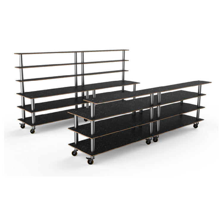 Steelite MGCMLC11MSXW Mogogo Buffet Solutions Modular Double Bar is a versatile and sophisticated addition to any hospitality environment, providing a dynamic combination of functionality and aesthetic appeal. This modular double bar setup includes two key components: a back bar measuring 142 inches in length, 29-1/2 inches in width, and 73 inches in height, and a front bar with dimensions of 142 inches by 34-1/2 inches by 47-1/2 inches. The bars feature Nero Marquina marble BHP high pressure laminate with a bamboo core top, ensuring both durability and elegance. Equipped with brushed stainless steel casters, this setup is designed for mobility, allowing for easy relocation within various settings. Despite its substantial size, the modular design facilitates easy assembly and disassembly, catering to venues requiring versatile and adaptable configurations. Perfect for hotels, catering services, and event spaces, the Steelite MGCMLC11MSXW Mogogo Buffet Solutions Modular Double Bar seamlessly combines style with practicality, aligning with the diverse needs of the hospitality industry. The product is delivered in a knocked-down state, enhancing ease of transport and storage, and is packed individually to ensure protection during transit. The thoughtful design and high-quality materials make it a compelling choice for establishing an impressive and functional bar setup.