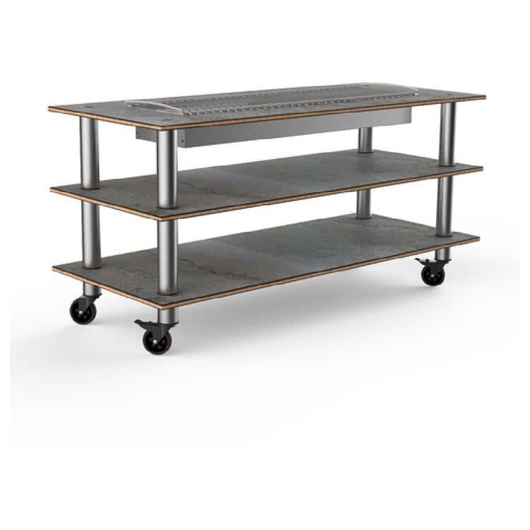 The Steelite MGCMLD06GSXW Mogogo Buffet Solutions Modular Heat Table is a high-quality, versatile solution for various buffet settings. With dimensions of 71" x 29-1/2" x 35"H, this 3-tier rectangular table is designed to maximize space while providing an elegant presentation platform. The table features a grey slate BHP high-pressure laminate with a bamboo core top, combining durability with a sleek aesthetic suitable for both modern and traditional settings. The inclusion of brushed stainless steel casters enhances mobility, allowing for easy reconfiguration in dynamic environments. This modular heat table is delivered knocked down, streamlining transportation and setup processes. The distinct design of the Steelite MGCMLD06GSXW caters to a diverse range of market segments within the hospitality and catering industries, offering a robust and functional solution for hotels, restaurants, and event venues looking to enhance their buffet presentations. Its sturdy construction and aesthetic appeal make it an invaluable asset for operators aiming to deliver a premium dining experience, ensuring that it stands out in the competitive landscape of buffet solutions.