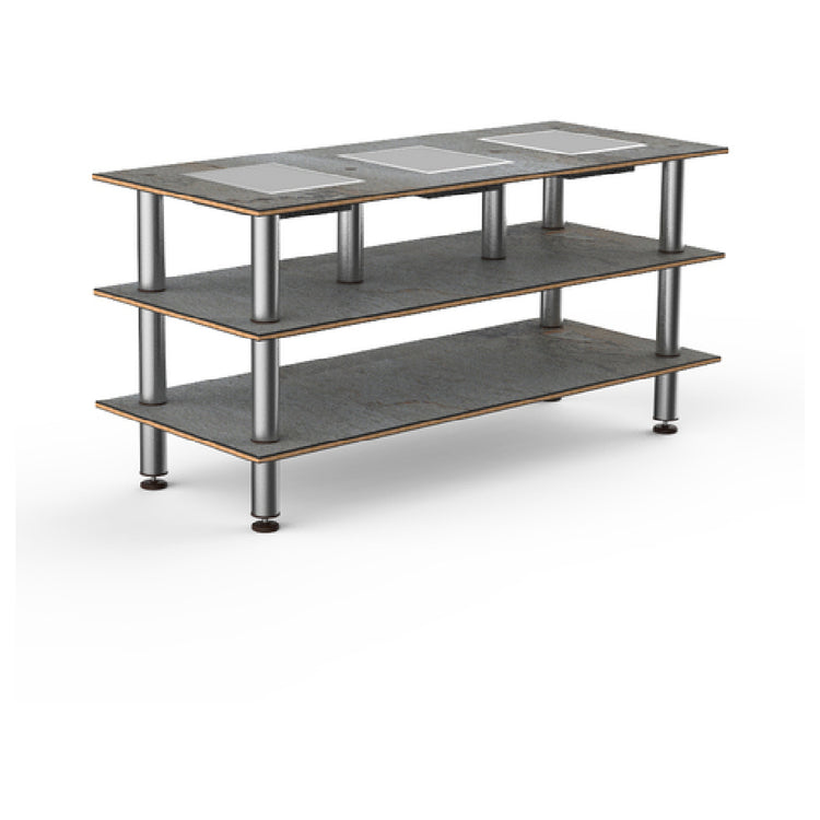 The Steelite MGCMLD07GSXF Mogogo Buffet Solutions Modular Nemco Induction Warming Unit is a versatile and sophisticated addition to any food service setup. This advanced warming unit measures 71 inches by 29-1/2 inches by 35 inches high and features a unique rectangular, triple well design. It is constructed with a grey slate BHP high-pressure laminate with a bamboo core top, providing both durability and a sleek aesthetic. The unit is supported by brushed stainless steel legs, ensuring stability and a modern appearance. The touch control interface offers ease of use, making it user-friendly for staff in high-paced environments. With a power output of 270 watts, operating at 120 volts and 2.2 amps, this induction warming unit is energy efficient while maintaining optimal food temperatures. Delivered knocked down, the Steelite MGCMLD07GSXF is designed for easy assembly and transport. This product is particularly valuable for markets such as catering, hospitality, and buffet services that require reliable, stylish, and efficient warming solutions. Its modular design allows for flexible configurations, making it adaptable for various event styles and sizes. The Steelite MGCMLD07GSXF Induction Warming Unit seamlessly combines functionality with elegance, making it indispensable for professionals in the food service industry.