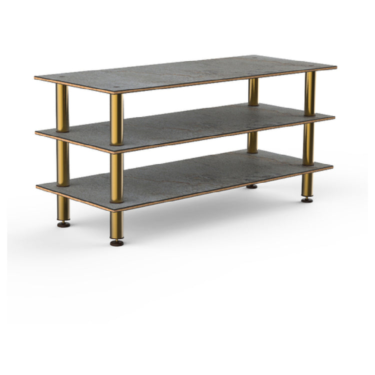 The Steelite MGCMLX01GBXF Mogogo Buffet Solutions Modular Classic Serving Station 3-tier is a versatile and elegantly designed piece that caters to diverse market needs within the hospitality and catering industry. This large, rectangular serving station measures 71" x 29-1/2" x 35"H, providing ample space for a variety of display and serving options. Constructed with grey slate BHP high-pressure laminate, it features a robust bamboo core top, ensuring both durability and a sophisticated aesthetic. The brushed brass legs add a touch of elegance while maintaining structural integrity, making it a stylish yet practical choice for any buffet setup. Its modular design allows for easy customization and adaptability to different event sizes and themes. The knockdown construction facilitates effortless assembly and disassembly, making it an efficient option for venues that require frequent setup changes. Packed as one complete unit, the Steelite MGCMLX01GBXF is an ideal solution for hotels, restaurants, and catering services looking to enhance their presentation capabilities with a reliable and visually appealing serving station. Its thoughtful design and high-quality materials ensure that it meets the demands of both functionality and style, making it a valuable asset in any professional food service environment.