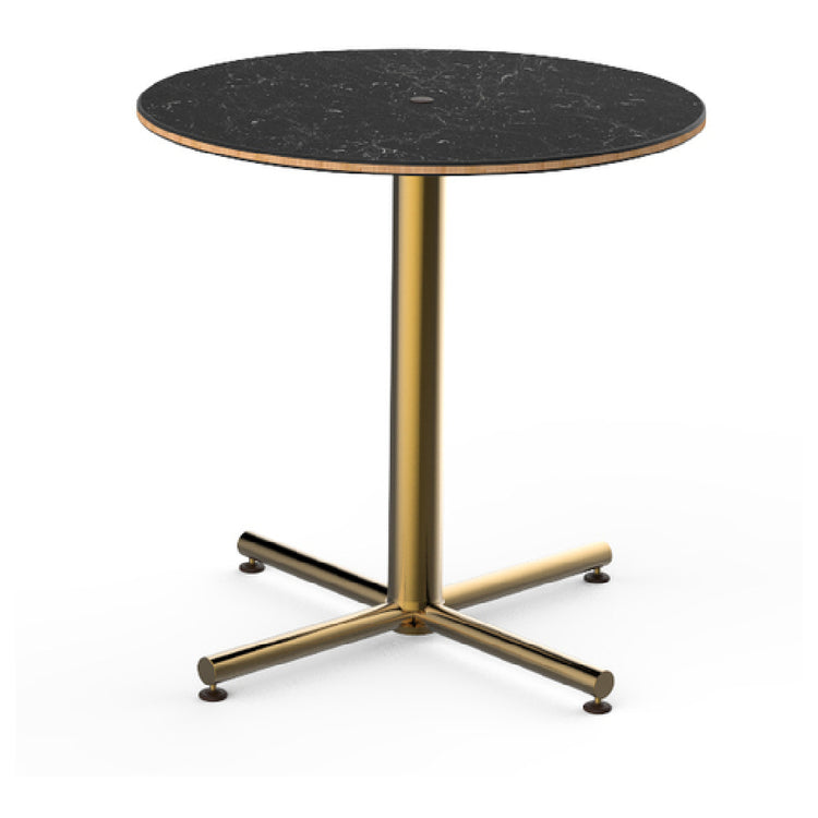 The Steelite MGCPRR01MBXX Mogogo Buffet Solutions Bistro Table 30" Dia. X 29" H Round is a sophisticated addition to any dining or event space, blending elegant design with practical features. This round table, measuring 30 inches in diameter and 29 inches in height, is crafted with a Nero Marquina marble BHP high pressure laminate that promises durability and aesthetic appeal. The bamboo core top adds an element of sustainability and eco-conscious design, while the brushed brass segments provide a luxurious finish that enhances its visual appeal. With its knockdown capability, the table is convenient for storage and transportation, making it an ideal choice for venues that require flexible setups. Packed individually, the Steelite MGCPRR01MBXX table caters to the needs of hospitality professionals looking for quality and style. The unique combination of high-quality materials and practical features makes this bistro table suitable for upscale hotels, restaurants, and event spaces that value both functionality and design excellence. This table is a testament to Steelite International's commitment to merging classic aesthetics with modern durability, offering a versatile piece that suits a range of interior themes and professional culinary environments.
