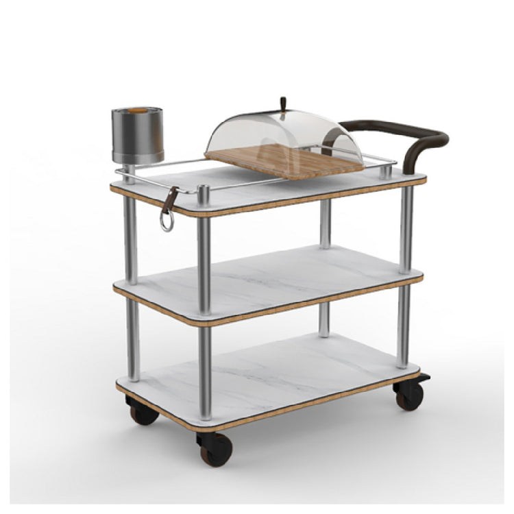 Steelite MGCRNX04CSXX Mogogo Rollin Cheese Plate And Wine Cart With Leather Handle White Carrera Stainless Steel - 1/Case
