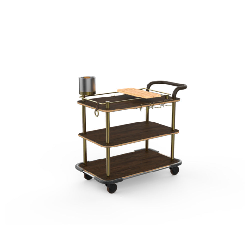 The Steelite MGCRNX13WBXX Service Cart 42-1/2"L X 24"W X 36-1/2"H Mixed Materials is a meticulously designed service cart that caters to diverse needs within the hospitality and service industry. With dimensions of 42-1/2 inches in length, 24 inches in width, and 36-1/2 inches in height, it offers ample space for transporting items with efficiency and ease. The cart is constructed from mixed materials, embodying a blend of durability and style, presented in a distinctive brown color. The Mogogo series by Steelite ensures that this cart is not only robust but also elegantly designed to complement various environments. Its mobility is enhanced by its rolling feature, making it suitable for dynamic workspaces where ease of transport is crucial. Each unit is packed individually, ensuring that it arrives in pristine condition. The Steelite MGCRNX13WBXX Service Cart is an exceptional choice for establishments ranging from upscale hotels to busy catering services, providing a reliable and stylish solution for effective service delivery.
