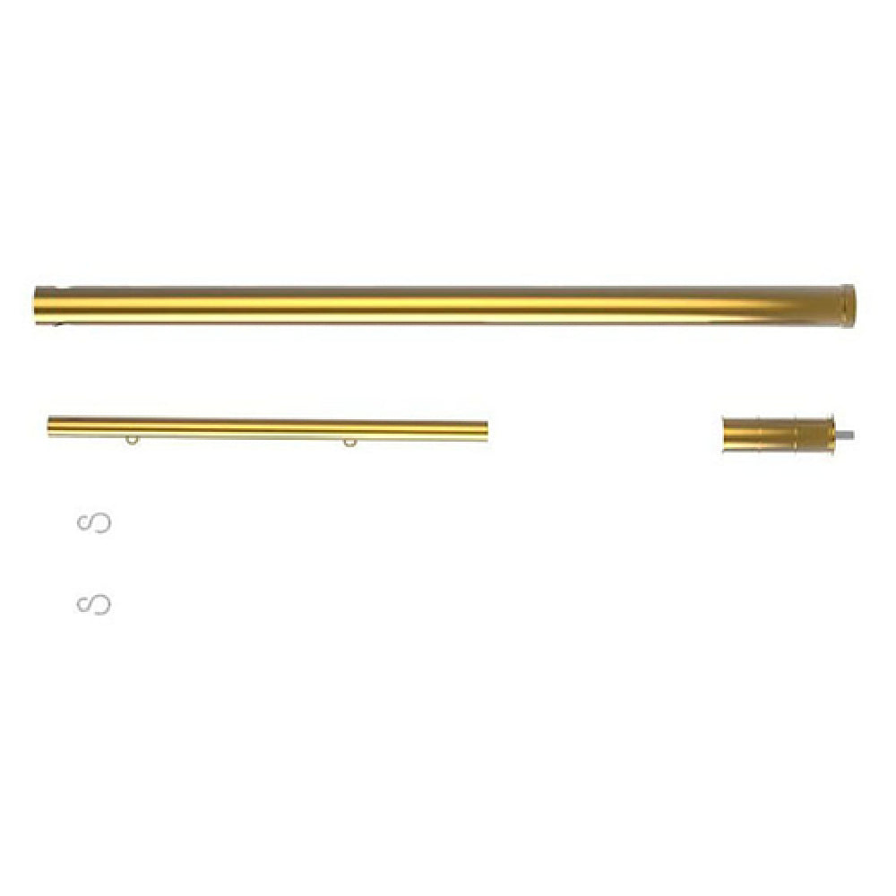 The Steelite MGSADDBR0801 Mogogo Buffet Solutions Modular Sign Post Set is an innovative and versatile signage solution designed for the hospitality and event industries. This set includes a 71-inch horizontal pole and a 59-inch vertical pole, allowing for flexible configuration and clear display of information. The inclusion of two hooks enhances its utility by providing easy attachment points for various signage or banners. Finished in brushed brass, this modular sign post not only offers durability but also adds an elegant touch to any setting. The entire set is conveniently packed inside a sturdy cardboard tube, ensuring safe storage and transport. Ideal for use in dynamic environments such as hotels, restaurants, or conference centers, this sign post set stands out due to its functional design and aesthetic appeal. Its modular nature allows it to seamlessly integrate into different settings, making it a valuable tool for effective information dissemination across various market segments within the industry.
