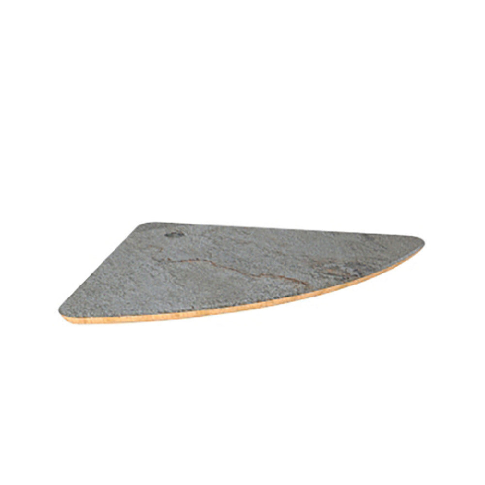 The Steelite MGSCLSHG0601 Mogogo Buffet Solutions Modular Display Shelf 17" x 17" is a large, triangular shelf designed to enhance the presentation of buffet stations with its modern aesthetic and practical features. Crafted with a grey slate BHP high-pressure laminate and a sturdy bamboo core top, this shelf is not only visually appealing but also durable and resilient, making it suitable for various food service environments. The modular nature of this display shelf allows for versatile configurations, catering to different display needs and optimizing space utilization. Its 17" x 17" dimensions provide ample surface area for arranging an array of culinary delights. This product is efficiently packed, with one unit per package, ensuring ease of handling and transport. The Steelite MGSCLSHG0601 is particularly advantageous for upscale hotels, catering services, and banquet halls seeking to elevate their buffet presentation with a touch of elegance and functionality. The combination of high-quality materials and innovative design sets this modular display shelf apart in the industry, offering a unique balance of style and practicality that aligns with the varying demands of professional food service operations.