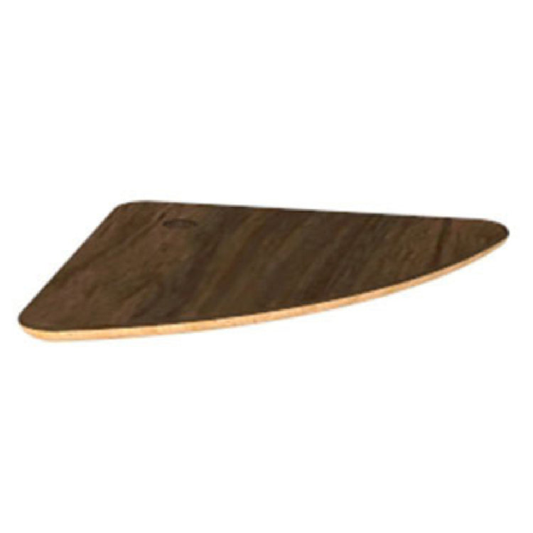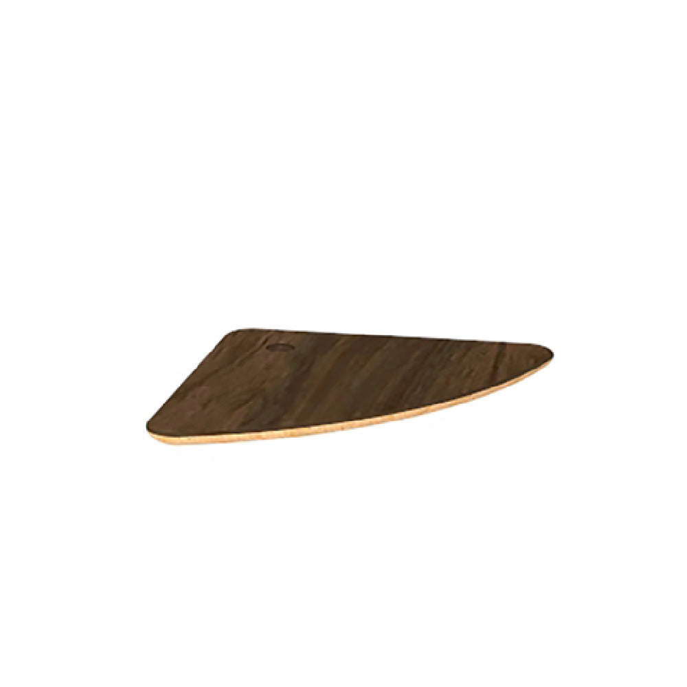 The Steelite MGSCLSHW0701 Mogogo Buffet Solutions Modular Display Shelf, sized at 14" x 14", is an elegantly designed, small triangular platform crafted to enhance buffet presentations. This display shelf is constructed from Bengali mango wood, a choice that not only adds a touch of sophistication but also ensures durability in high-traffic environments. The shelf's surface is made from a high pressure laminate with a bamboo core top, providing a smooth and resilient finish that withstands the rigors of frequent use. The modular nature of this display shelf allows it to be integrated seamlessly into diverse settings, making it suitable for various segments of the hospitality industry, including hotels, restaurants, and catering services. Its compact dimensions make it an ideal choice for maximizing space while offering a stylish presentation solution. The Steelite MGSCLSHW0701 is packed individually, reflecting a focus on quality and careful handling. This product represents a fusion of aesthetics and practicality, designed to meet the unique demands of professional food service environments by providing a sturdy, versatile, and visually appealing display option.