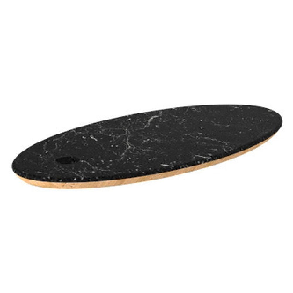 The Steelite MGSSLFHB0301 Mogogo Buffet Solutions Modular Shelf 20" X 10" Oval is meticulously crafted to enhance buffet presentations across various hospitality settings. This modular shelf boasts an elegant oval design with dimensions of 20 inches by 10 inches, providing ample space for showcasing culinary creations. The surface is made from Nero Marquina marble BHP high-pressure laminate, renowned for its durability and aesthetic appeal, paired with a bamboo core top that adds a sustainable touch to its construction. This shelf is packed by 1 each, ensuring ease of installation and flexibility in design configurations. Its robust materials make it a versatile choice for establishments prioritizing both functionality and style, such as hotels, restaurants, and catering services. The Steelite Mogogo Buffet Solutions Modular Shelf stands out in the industry for its unique combination of high-quality materials and modularity, allowing for customizable buffet setups that cater to diverse event themes and scales. The use of Nero Marquina marble not only provides an upscale look but also promises longevity and ease of maintenance, making it a practical investment for food service operators looking to enhance their buffet displays with sophistication and reliability.