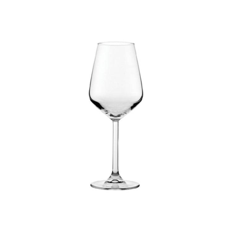 The Steelite P440080 White Wine Glass is a sophisticated choice for wine connoisseurs and establishments looking to enhance their drinkware collection with a touch of elegance. With a capacity of 12.25 oz., this glass is meticulously crafted from clear soda lime, ensuring both durability and clarity to showcase the pristine qualities of white wine. The glass stands 8-3/4 inches tall, featuring a modern design with a mid-section diameter of 3-1/4 inches, a top opening of 2-1/4 inches, and a base diameter of 2-7/8 inches, offering a stable and balanced hold. As part of the Pasabahce Allegra collection, these glasses are a staple stock item, packaged six per case, making them a practical choice for restaurants, bars, and catering events that require a blend of style and functionality. Their clear construction allows for the true color of the wine to shine through, enhancing the tasting experience. The Steelite P440080 is designed to meet the expectations of both casual and professional settings, providing an exquisite vessel for every white wine enthusiast.