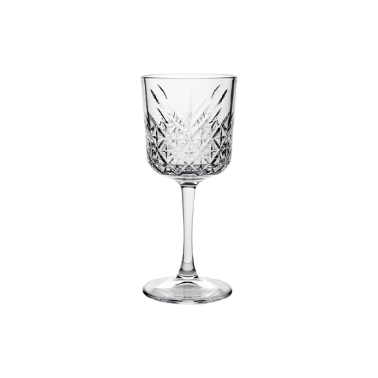 The Steelite P440276 Wine Glass 11.5 Oz. is a sophisticated choice for wine enthusiasts and hospitality professionals alike. With a height of 7-3/4 inches, a middle diameter of 3-1/2 inches, a top diameter of 3-1/2 inches, and a base diameter of 3-1/4 inches, this glass is designed to enhance the wine-tasting experience. Crafted from soda lime glass, it offers clear visibility and a timeless vintage appeal that suits a variety of settings, from upscale restaurants to casual dining environments. Produced by Pasabahce, a renowned name in glassware, this item is sold as a stock item in packs of one dozen, making it a practical option for establishments requiring bulk orders. The Steelite P440276 Wine Glass balances elegance with functionality, making it an excellent addition to any glassware collection. Its precise dimensions and material composition cater to both aesthetic and practical requirements, ensuring durability and style. Whether used in a high-end dining venue or a bustling bar, this wine glass stands out with its classic design and reliable construction, making it a valuable asset for professionals in the food and beverage industry.