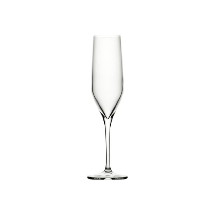 The Steelite P440319 Flute Glass 7.0 Oz. is a sophisticated piece crafted for elegance and functionality, ideal for various segments in the hospitality and beverage industry. Featuring precise dimensions of Height - 9-1/2 inches, Maximum Diameter - 2-3/4 inches, and a Base Diameter of 2-3/4 inches, this flute glass is designed to enhance the presentation and experience of sparkling beverages. Made from Soda Lime glass, it ensures clarity and durability, making it a reliable choice for both high-end restaurants and casual dining settings. The glass accommodates a volume of 7.0 ounces, perfectly suited for serving champagne and other sparkling wines. Manufactured by Pasabahce and included in the Napa collection, this glass exemplifies quality and style, providing a timeless aesthetic suitable for any occasion. Packed by 2 dozen per case, the Steelite P440319 is also an efficient option for establishments managing large-scale events or daily service, offering both convenience and value without compromising on elegance. As a stock item, it is readily available to meet the varying demands of the modern food and beverage industry, ensuring that every pour is as refined as the glass it is served in.