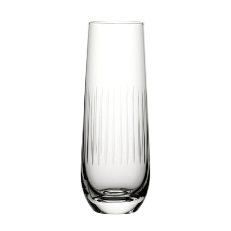 The Steelite UR90715 Champagne Glass 10 Oz. is a sophisticated stemless option within the Utopia Glass collection, characterized by its sleek Raffles Lines design. With a height of 6-3/8 inches, a maximum diameter of 2.375 inches, a base diameter of 1.5 inches, and a top opening of 1.875 inches, this crystalline clear glass is meticulously crafted for elegance and functionality. Each case contains two dozen glasses, reflecting its suitability for both commercial and upscale home environments. The stemless design not only lends a contemporary edge but also enhances stability, making it a preferred choice for event planners, caterers, and hospitality professionals aiming to merge style with practicality. Its convenient size makes it a versatile choice for serving champagne and sparkling wines, catering to the needs of restaurants, hotels, and banquet services looking to elevate their beverage presentation with a touch of sophistication. The Steelite UR90715 is a stock item, ensuring consistent availability for large-scale operations. Ideal for those in the food service industry who prioritize both aesthetics and functionality, this glass embodies both the durability expected from high-quality stemware and the elegance desired in fine dining settings.