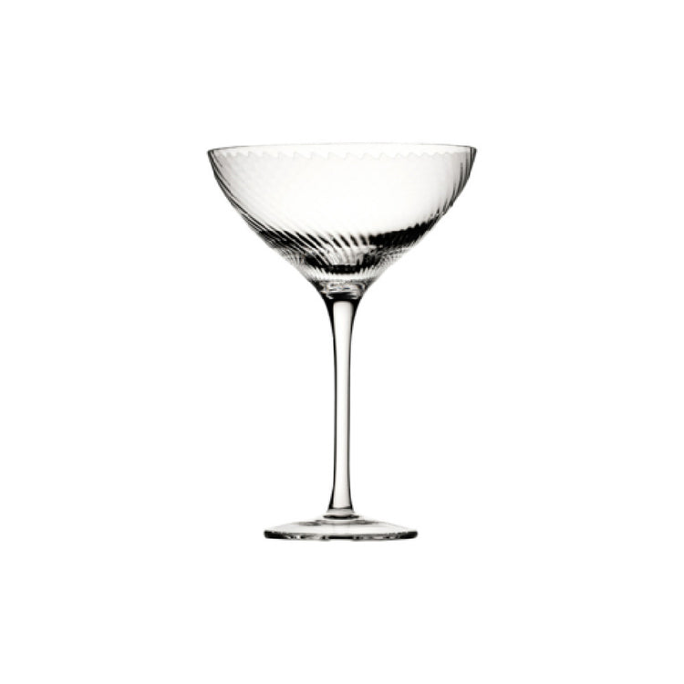 The Steelite UR90729 Coupe Glass is an elegantly designed beverage vessel with a capacity of 10.25 ounces, making it a versatile addition to any barware collection. Crafted from soda lime glass, this clear coupe features precise dimensions that cater to a range of serving needs. With a height of 7-1/8 inches and a mouth diameter of 4-7/8 inches, it provides an ideal balance of size and style, suitable for serving cocktails or desserts. The base diameter of 2-7/8 inches ensures stability while enhancing its sophisticated profile. Part of the Utopia collection, the Twisted Hayworth design adds an artistic flair, making it a distinguished choice for upscale dining establishments, hotels, and cocktail bars. Packed in a dozen, this coupe glass is a practical option for venues seeking to maintain a consistent and stylish presentation across their beverage service. The Steelite UR90729 Coupe Glass embodies a blend of functionality and aesthetic appeal, making it a valuable component for various segments within the hospitality industry, from intimate settings to large-scale events.