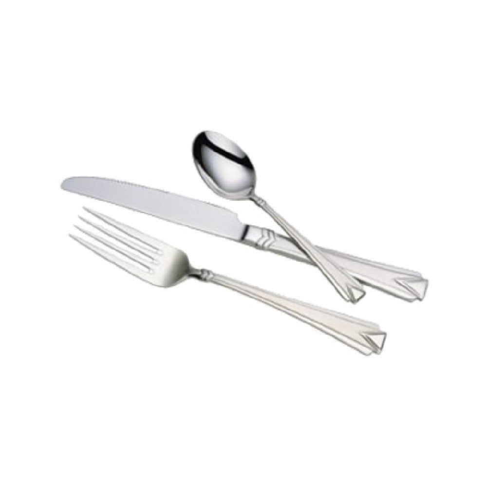 The Steelite WL26451 European Dinner Knife 9-3/4" Diamond Crowned is a meticulously crafted piece designed to elevate dining experiences across various market segments within the hospitality industry. This knife measures an impressive 9-3/4 inches, offering a balanced and comfortable grip ideal for fine dining establishments and catering services. Its diamond-crowned design, a hallmark of elegance, ensures a sophisticated presentation at any dining table. Crafted from high-quality stainless steel, this dinner knife boasts a frosted finish inside, juxtaposed with a mirror finish outside, providing a visually striking contrast that enhances its aesthetic appeal. Part of The Hallmark Collection by Walco, the Athenian™ line guarantees a blend of timeless design and modern functionality, making it a preferred choice for upscale restaurants and hotels seeking to impress their guests. The durable stainless steel construction not only ensures longevity but also simplifies maintenance, making it suitable for high-demand environments. As a stock item, it offers reliable availability for businesses requiring consistent inventory. The Steelite WL26451 European Dinner Knife is a testament to refined craftsmanship, offering both functional utility and an upscale look, appealing to a diverse range of clientele in the food service industry.