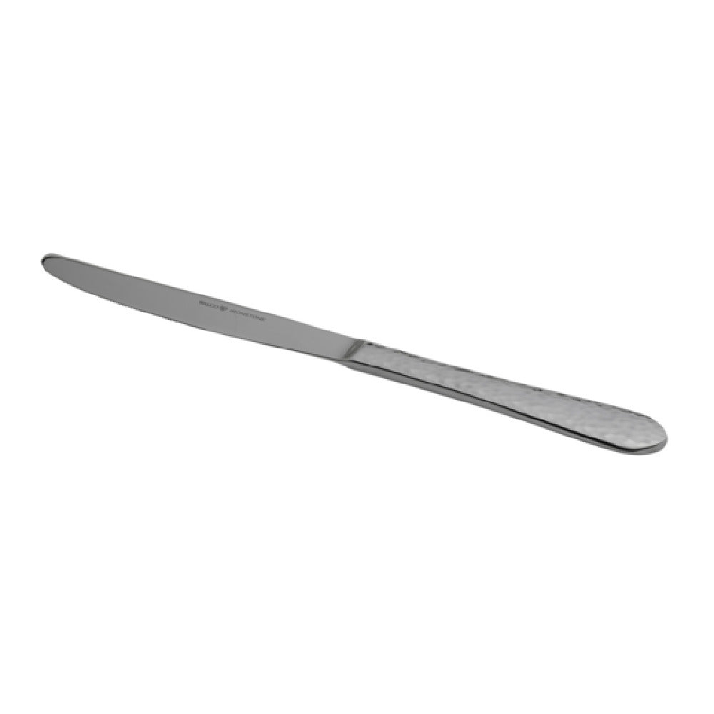 The Steelite WL6345 Dinner Knife 8-3/4" One Piece is a meticulously crafted dining utensil that stands out with its hammered design and stainless steel construction. This knife showcases a sleek mirror finish, aligning with the quality standards of The Hallmark Collection™. Produced by Walco, part of the renowned IronStone™ line, this knife is not only aesthetically pleasing but also highly functional. Its one-piece construction ensures durability and a seamless design, ideal for both casual and formal dining settings. Measuring 8-3/4 inches, this dinner knife is ergonomically designed to provide a comfortable grip, enhancing the dining experience. The Steelite WL6345 is perfect for upscale restaurants, catering services, and home dining, offering a fine balance between elegance and practicality. Its stainless steel composition guarantees resistance to corrosion and tarnish, making it a lasting addition to any cutlery collection. As a stock item, it is readily available for those seeking to upgrade their table setting with a touch of sophistication. This knife is a testament to Steelite International's commitment to quality and design, making it a preferred choice in the food service industry for its reliability and aesthetic appeal.