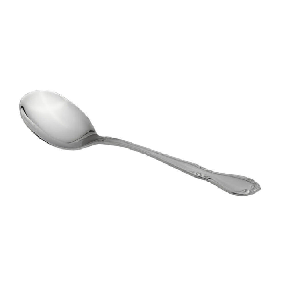 The Steelite WL9112 Bouillon Spoon 6" Traditional Fiddleback Design is a meticulously crafted utensil that embodies elegance and functionality. Measuring at 6 inches, this bouillon spoon features a traditional fiddleback design, a classic style that adds a touch of sophistication to any dining experience. Constructed from 18/10 stainless steel, it ensures durability and resistance to corrosion, making it ideal for both casual and fine dining settings. The Walco Illustra™ collection, from which this spoon is a stock item, is renowned for its high-quality craftsmanship and refined aesthetic, making it a preferred choice for hospitality professionals. This bouillon spoon is perfect for delivering elegance and strength, catering to diverse market segments within the food service industry, such as hotels, restaurants, and catering services. Its robust design also makes it suitable for high-volume establishments that require reliable and durable flatware without compromising on style. The Steelite WL9112 Bouillon Spoon is a harmonious blend of tradition and innovation, emphasizing quality and performance, making it an essential addition to any sophisticated table setting.