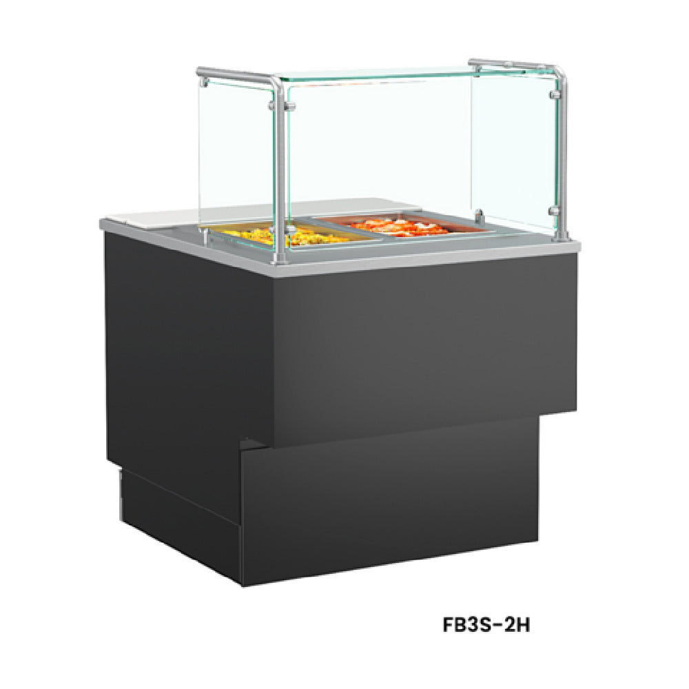 The Structural Concepts FB5S-4H Grocerant Service Heated Food Bar is a sophisticated food service solution designed for diverse market segments such as grocery stores, cafeterias, and convenience stores requiring reliable heated food display options. With dimensions of 64"W x 43"D x 51-3/4"H, this food bar is built to accommodate full-size 6D pans, though the pans are not included. Each well within the unit features individual temperature controls, allowing for precise thermal management suited to a variety of food types and serving conditions. The inclusion of a glass sneeze guard provides both safety and hygiene, ensuring that food remains uncontaminated during service. A rear wrapping board enhances functionality, providing an area for packaging and preparation tasks. Additionally, the open rear storage design ensures easy access to essential tools and supplies, contributing to efficient service operation. This heated food bar is an optimal choice for businesses aiming to maintain food at ideal serving temperatures while facilitating a streamlined service process, underscoring its unique value proposition within the food service industry.