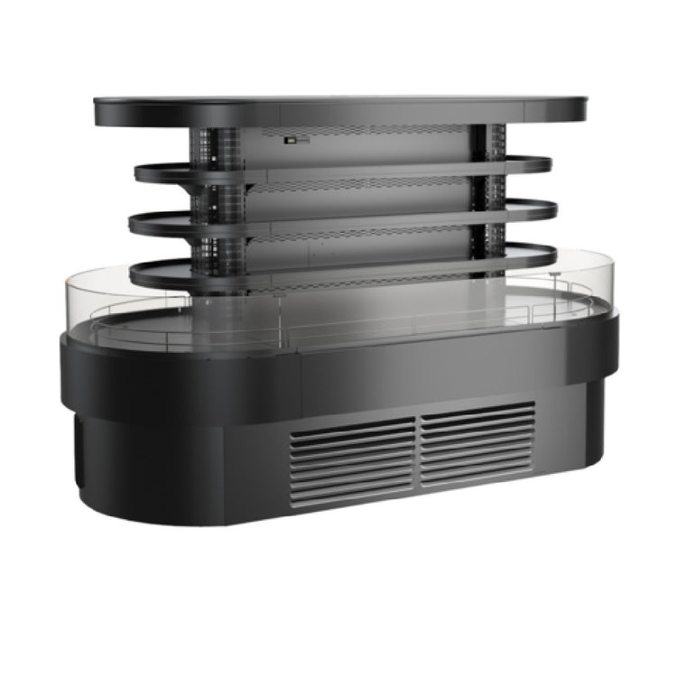 Structural Concepts, FSI860R, Oasis® Refrigerated Self-Service Island, 60"H, open air screen, (3) non-lit non-adjustable metal shelves, top light, black interior, includes price tag moulding (matches interior color), laminated exterior, levelers, Breeze self-contained refrigeration system, R290 Hydrocarbon refrigerant, cETLus, ETL-Sanitation
