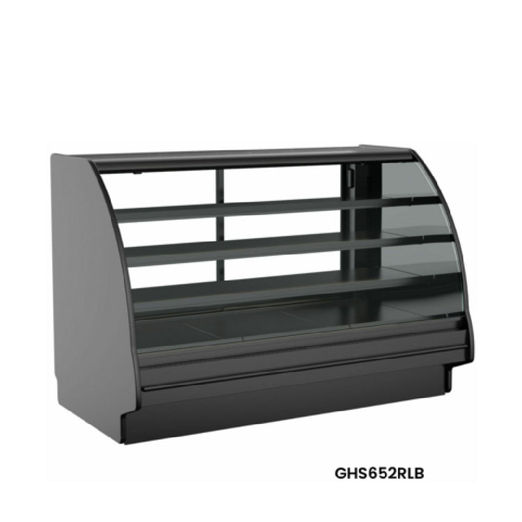 The Structural Concepts GHS552RLB (CURVED) Fusion® Refrigerated Service Case is a meticulously engineered display solution, measuring 60-5/8"W x 42-3/4"D x 51-1/4"H, tailored for diverse market needs within the refrigerated display industry. Featuring a curved lift-up front glass, it enhances product visibility while maintaining optimal temperature control with an integrated average product temperature of 40°F or less. This refrigerated service case is equipped with three solid shelves, providing ample space for product arrangement. The LED top and shelf lights, complete with a frosted lens, ensure even and appealing illumination of displayed goods. Further enhancing its practicality, the clear glass rear sliding doors facilitate easy access for restocking and maintenance. The unit operates with a remote DX refrigeration system, ensuring efficient cooling performance. The stainless steel rear exterior not only adds to its durability but also complements a professional aesthetic. Certified by cETLus and ETL-Sanitation, the Structural Concepts GHS552RLB is a reliable choice for environments where hygiene and consistent refrigeration are critical. This product combines cutting-edge design with robust functionality, making it a valuable addition to any commercial food service setting looking to optimize product presentation and preservation.
