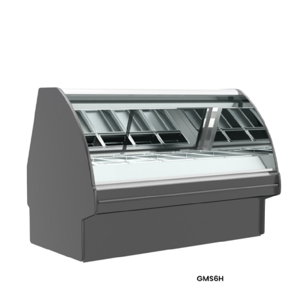 The Structural Concepts GMS8H Fusion® Heated Display Case is an expertly designed unit measuring 97-1/2"W x 42-3/4"D x 51-5/8"H, making it a spacious solution for food service environments requiring reliable heating and display options. This unit features a curved lift-up front glass, which enhances visibility and accessibility, while the clear glass rear sliding doors provide easy access for service staff. With its powder coated exterior, the display case ensures durability and a sleek appearance. It accommodates up to 4-inch deep pans, making it versatile for various food items. The stainless steel rear exterior and interior not only provide a modern look but also enhance the unit's durability and ease of cleaning. Certified by cETLus and ETL-Sanitation, this display case meets high standards of safety and sanitation, crucial for any commercial kitchen. The Structural Concepts GMS8H Fusion® Heated Display Case is ideal for bakeries, cafeterias, and other food service operations seeking a blend of functionality and aesthetic appeal in their heated display solutions.