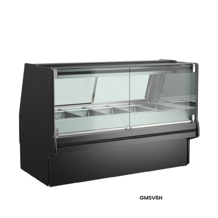 The Structural Concepts GMSV4H Fusion® Heated Service Case is engineered to enhance food service presentation and efficiency across various industry segments. With dimensions of 48-3/4 inches wide, 43 inches deep, and 51-5/8 inches high, this case provides ample space for showcasing hot foods. The vertical swing-out front glass design maximizes visibility and accessibility, making it ideal for busy food service environments. The clear glass rear sliding doors enable quick and easy access for service staff, enhancing customer service and operational workflow. Constructed with a stainless steel rear exterior and stainless steel interior, the GMSV4H ensures durability and ease of maintenance, crucial for high-traffic and demanding commercial settings. Certified by cETLus and ETL-Sanitation, this service case adheres to rigorous safety and sanitation standards, ensuring compliance with industry regulations. The thoughtful integration of these features into the GMSV4H Fusion® Heated Service Case positions it as a superior choice for businesses seeking reliable, attractive, and hygienic food display solutions. Its robust design caters to diverse market needs, from high-end restaurants to bustling cafeteria lines, providing a seamless blend of functionality and aesthetic appeal.