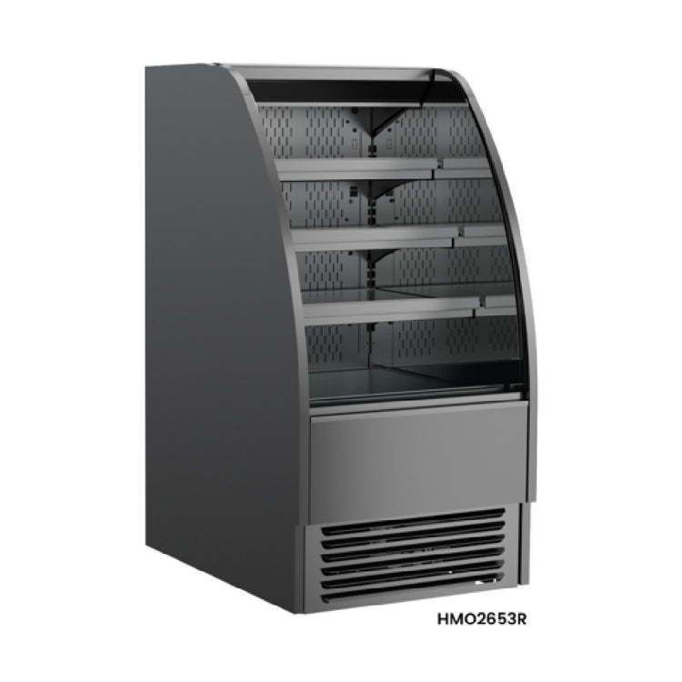 The Structural Concepts HMO5153R Harmony® Self-Service Refrigerated Case - 50-3/4"W is a meticulously designed unit catering to diverse market segments such as retail spaces and food service facilities. Featuring an open reach-in front, this case integrates a Breeze with EnergyWise self-contained refrigeration system, which includes an evaporator pan that ensures efficient cooling and energy savings. Equipped with three lighted glass shelves and a top light, this unit enhances product visibility, making it ideal for showcasing a variety of refrigerated items. The solid back panel and black interior with black trim create a sleek, modern appearance that complements any setting. Additionally, the case is fitted with two full end panels with mirrors and a laminated exterior for added aesthetic appeal. Stability is assured with adjustable levelers. This refrigerated case is cETLus and ETL-Sanitation certified, highlighting its adherence to high safety and sanitation standards. The Structural Concepts HMO5153R is a versatile solution for establishments aiming to present their products in an appealing and efficient manner while maintaining robust energy efficiency and operational reliability.