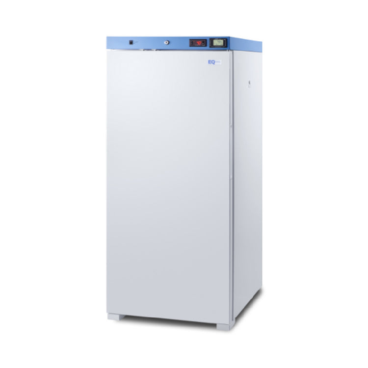 The Summit ACR1011W Upright Healthcare Refrigerator 24" Wide Freestanding Use is a precision-engineered medical appliance designed to meet the specific cooling needs of healthcare settings. With a spacious 9.88 cu.ft. capacity, it offers ample storage for medical supplies that require controlled temperature conditions. The unit operates within a temperature range of +2 to +8°C, maintained by an advanced digital thermostat and bolstered by a temperature memory function to ensure consistent internal conditions. An external temperature readout allows for easy monitoring, while an internal fan promotes uniform air circulation. This refrigerator is equipped with four adjustable wire shelves, providing customizable storage options. Enhanced safety features include a self-closing right swing solid door with a pocket handle and a magnetic door gasket, complemented by alarms for high/low temperatures and open doors. The thermometer probe is uniquely housed in a glass bead-filled bottle, adding precision to temperature readings. A pre-installed 3/8" probe hole and cover facilitate the integration of user-provided monitoring equipment. For eco-conscious users, the unit utilizes R600a refrigerant for an environmentally friendly operation. Certified under ETL and ETL-C (Healthcare) standards, this refrigerator ensures compliance with healthcare regulations, making it an indispensable asset in medical environments.