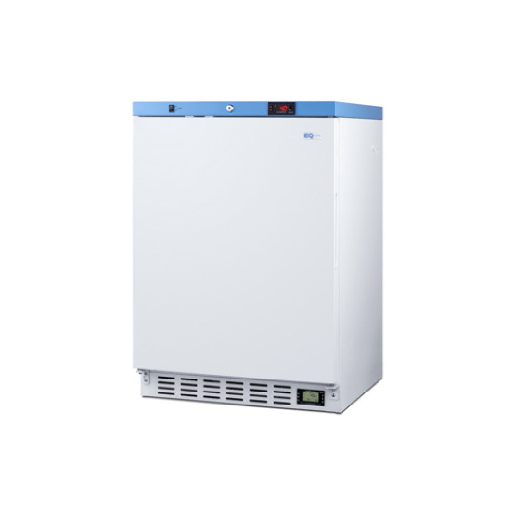 The Summit ACR51WNSF456 Built-in Healthcare Refrigerator is a versatile and efficient cooling solution, measuring 24 inches in width and offering 3.88 cubic feet of storage capacity. It is designed for both freestanding and built-in installations, making it adaptable to various healthcare environments. Operating within a precise temperature range of +2 to +8°C, this refrigerator features a temperature memory function and an external temperature readout for consistent monitoring. An internal fan and digital thermostat ensure optimal cooling, while the automatic defrost feature adds convenience. The unit includes three adjustable wire shelves and a right swing solid door with a pocket handle, enhancing accessibility. Its flat door liner, magnetic door gasket, and self-closing mechanism contribute to its robust design. The digital control panel is equipped with alarms for high/low temperature and open door scenarios, ensuring security. A thermometer probe encased in a glass bead-filled bottle enhances temperature accuracy, while a pre-installed 3/8" probe hole with cover facilitates custom monitoring setups. LED lighting and a factory-installed lock provide added utility, and the hospital-grade cord with 'green dot' plug ensures safety. Certified to NSF 456 Vaccine Storage Standard, this eco-friendly refrigerator utilizes R600a refrigerant, aligning with CARB compliance, and operates on 115V/60 Hz power.