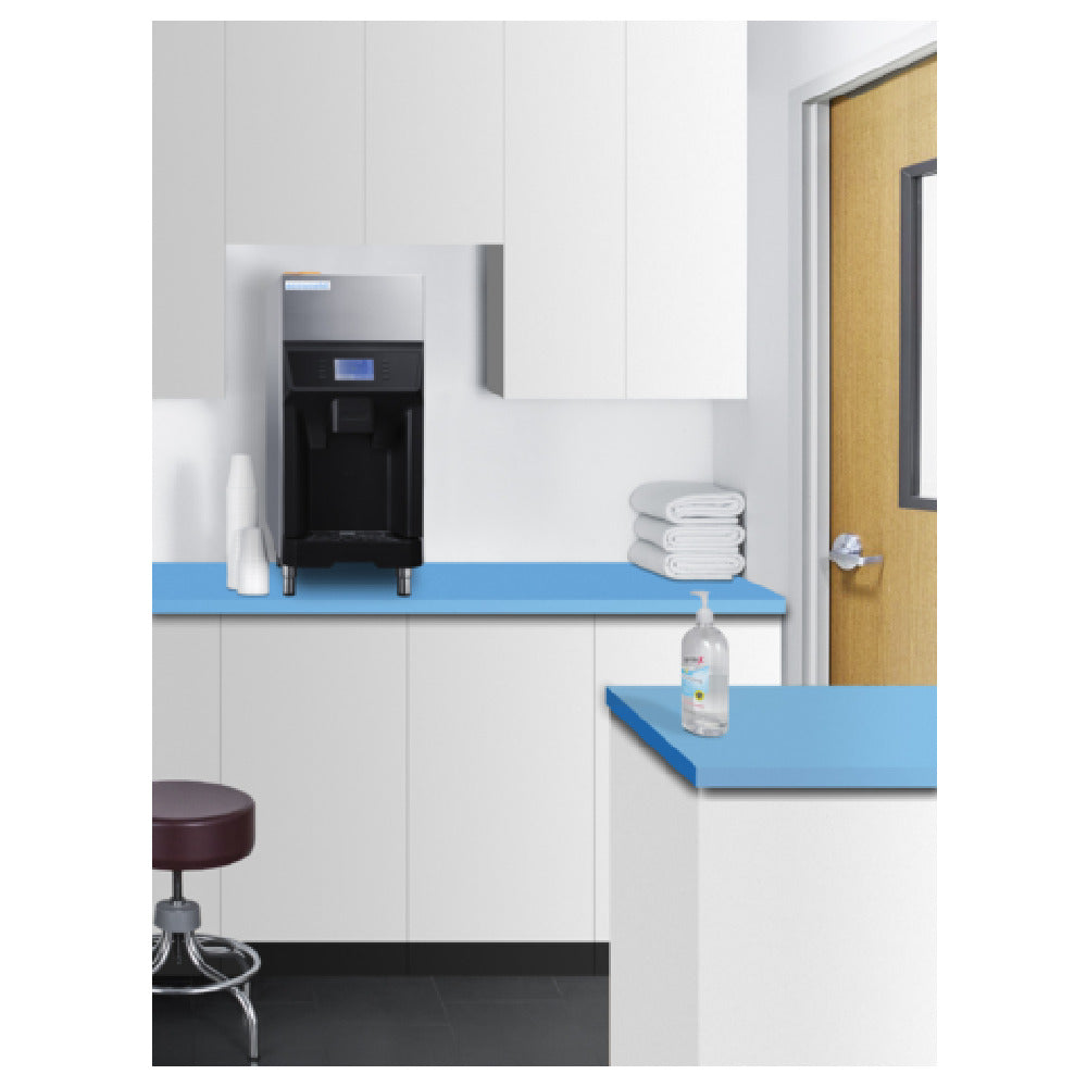 Summit Commercial, AIWD220, Commercial cube ice & water dispenser, 13.88"W, countertop, stainless steel front, stainless steel look cabinet, produces up to 220 lbs. of nugget clear ice in a day cycle, stores up to 6.2 lbs, dispenses ice, water, or ice + water, height adjustable legs, sealed back, UV dispensers light, LCD screen with clear readout of functions and easy touch-button operation, Lead-free certified, 115V/60 Hz, 4.6 amps, ETL, ETL-C, ETL-S, ENERGY STARĀ® (Commercial)