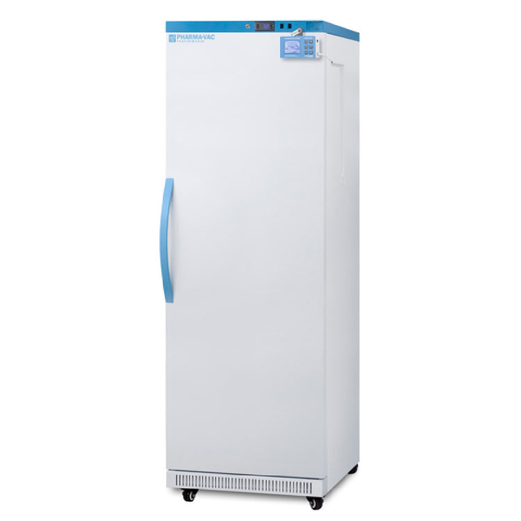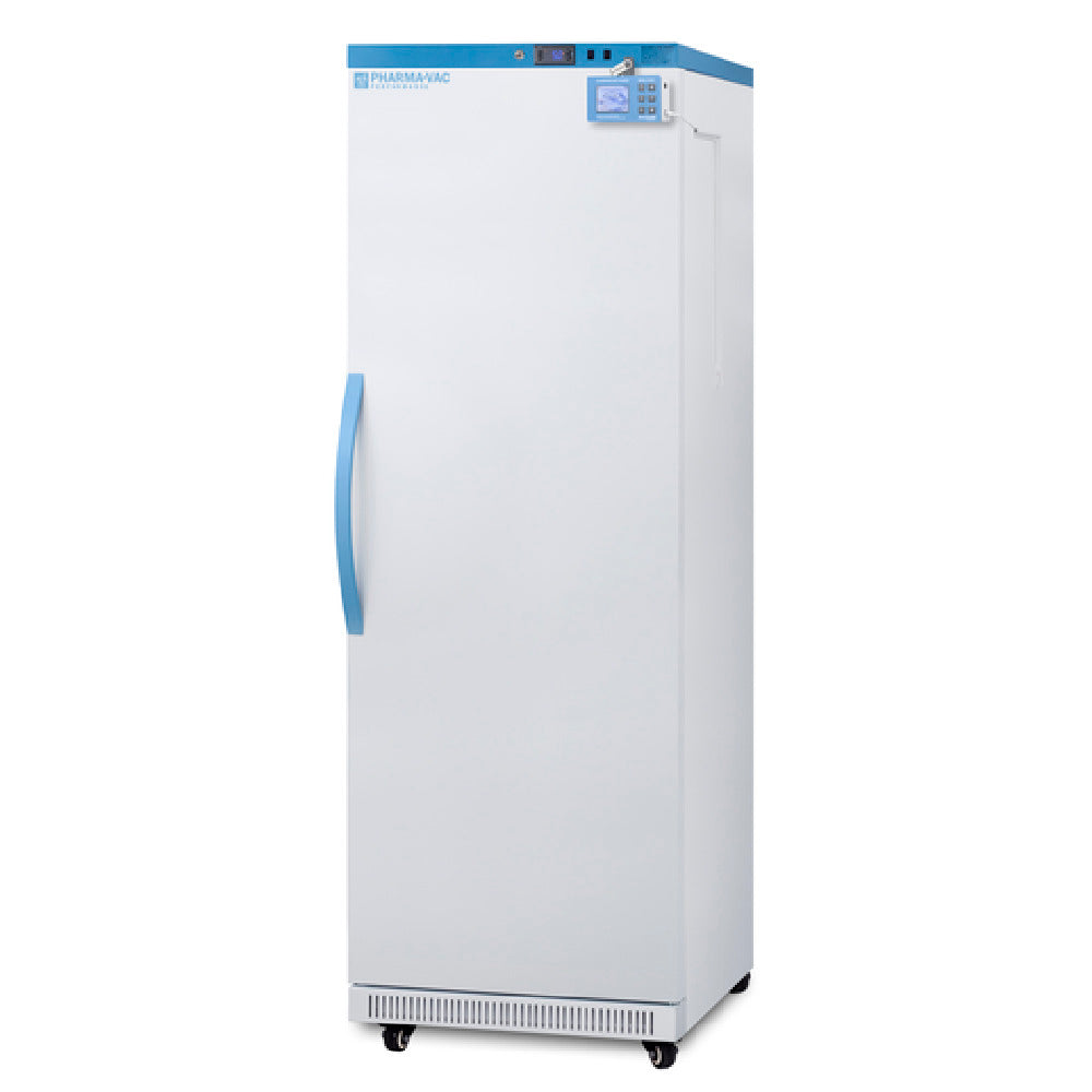 The Summit ARS18PVDL2B Accucold Pharmaceutical Refrigerator is a one-section, freestanding unit meticulously designed for storing sensitive medical supplies. With dimensions of 27-1/2" in width, it offers an 18 cu. ft. capacity, ensuring ample storage space for various pharmaceutical products. The refrigerator maintains a precise temperature range of +2°C to +8°C, crucial for preserving the integrity of vaccines and medications. Featuring automatic defrost, it reduces maintenance efforts, while the field reversible self-closing solid door with a lock enhances security and accessibility. Equipped with six wire shelves, it provides organized storage solutions. The DL2B data logger ensures precise temperature monitoring, complemented by a digital thermostat for accurate control. An open door alarm and efficient LED lighting add practical functionality. The interior fan promotes uniform cooling within the white exterior and interior. Utilizing R290a Hydrocarbon refrigerant, it aligns with eco-friendly standards. It operates efficiently on 115v/60/1-ph with a 1.5 amps draw. Certified by ETL and cETL for commercial use, this refrigerator is a reliable choice for pharmacies, hospitals, and laboratories, offering robust performance and advanced features tailored to the pharmaceutical industry’s demands.