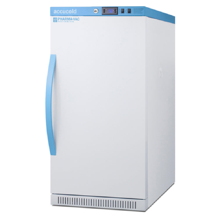 The Summit ARS32PVBIADA Accucold Pharma-Vac Medical Undercounter Refrigerator Reach-in is a meticulously engineered refrigeration solution designed for medical environments requiring precise temperature control and reliable storage. This one-section unit features an 18-inch width and offers a capacity of 2.83 cubic feet, making it an ideal choice for compact spaces that demand efficient storage solutions. The rear mount self-contained refrigeration system utilizes R600a Hydrocarbon refrigerant, ensuring both eco-friendliness and efficiency. Equipped with a reversible right hinged solid door that includes a locking mechanism and a blue antimicrobial handle, this refrigerator prioritizes hygiene and security. The interior is equipped with four adjustable wire shelves, allowing for versatile storage configurations. The auto defrost function and digital thermostat provide ease of maintenance and precise temperature management. A high/low temperature alarm ensures critical temperature deviations are promptly addressed, while LED lighting enhances visibility. The inclusion of a probe hole further amplifies its utility in medical settings. With its white interior and exterior finish, this unit meets ADA compliance standards, and operates at 115 volts, 60 hertz, and 0.75 amps, carrying cETL and ETL certifications. Summit’s ARS32PVBIADA is an indispensable asset for pharmacies, laboratories, and clinics seeking a compact, reliable refrigeration solution.