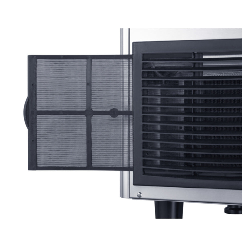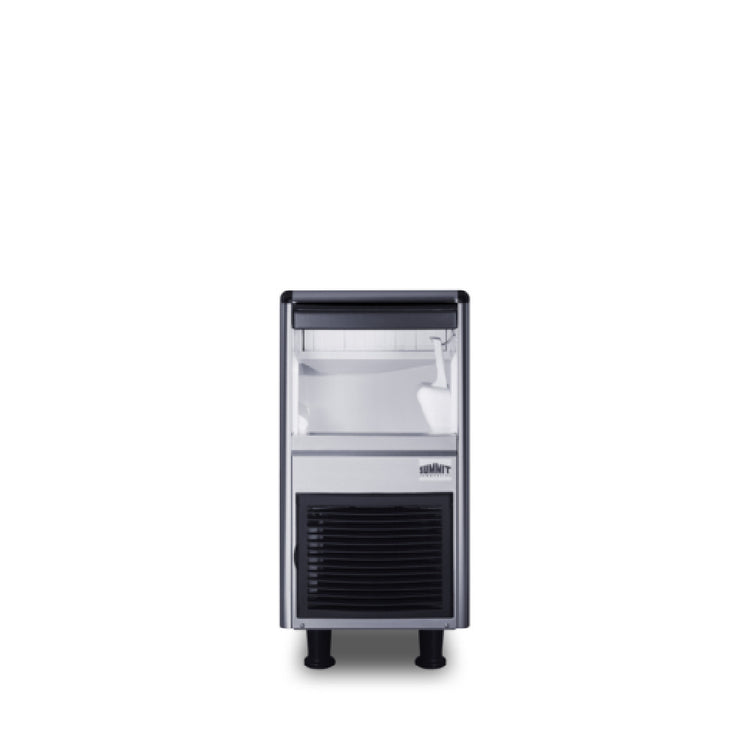 Summit Commercial, BIM77BU, Commercial Bullet Ice Machine, 15" W, sliding door, large capacity 77 lb. clear bullet ice production, store up to 33 lbs, full bin sensor, slim 22" depth is ideal for wet bars, island kitchens, and other undercounter areas with limited footprint space, air and water filter, easily increase or decrease bullet ice thickness to desired size via digital controls, ice scoop, clean mode allows you to periodically clean the system as needed with a neutral detergent, Included leg set allows you to clean the space below the icemaker, fully finished cabinet, CARB Compliant, Lead-free, 115v/60/1-ph, 3.5 amps, ETL, ETL-C, ETL-S, ENERGY STAR® (Commercial)
