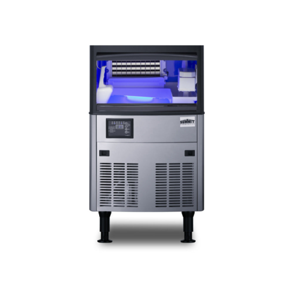 Summit Commercial, BIM85, Commercial clear cube Ice Machine, 20" W, sliding door, large capacity 80 lb. clear cube ice production, store up to 33 lbs, full bin sensor, unique 18" shallow depth i is ideal for wet bars, island kitchens, and other undercounter areas with limited footprint space, air and water filter, easily increase or decrease bullet ice thickness to desired size via digital controls, ice scoop, clean mode allows you to periodically clean the system as needed with a neutral detergent, Included leg set allows you to clean the space below the icemaker, fully finished cabinet, CARB Compliant, Lead-free, 115v/60/1-ph, 3.5 amps, ETL, ETL-C, ETL-S, ENERGY STAR® (Commercial)