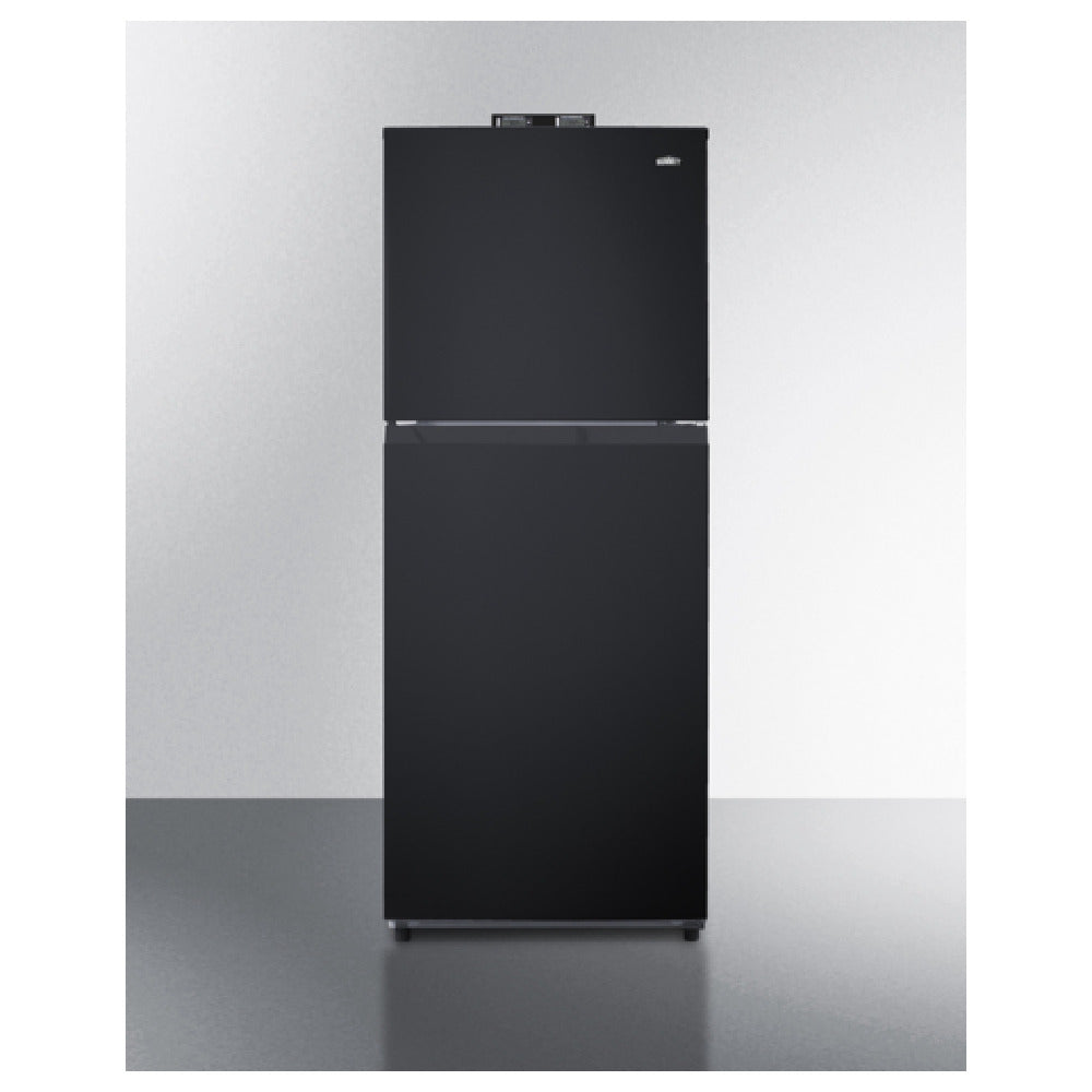 The Summit BKRF1087B Break Room Refrigerator-Freezer Reach-in One-section is a compact yet efficient appliance designed for diverse commercial environments. With a width of 24 inches and a capacity of 10.1 cubic feet, it effectively accommodates varying storage needs. This unit features a bottom-mounted, self-contained refrigeration system, ensuring consistent cooling performance. The refrigerator-freezer includes two reversible right-hinged solid doors, providing flexible installation options. Inside, users will find two adjustable refrigerator shelves and one freezer shelf, along with a crisper for organized storage. Equipped with a dial thermostat and a frost-free feature, this appliance maintains optimal internal conditions with minimal maintenance. Each section comes with an exterior-mounted NIST certified thermometer, allowing precise temperature monitoring. A high/low temperature alarm enhances safety by alerting users to any fluctuations. Interior lighting improves visibility, while the white interior and black exterior offer a sleek appearance. The unit is supported by level legs and wheels, facilitating stability and mobility. Operable at 115v/60/1-ph and drawing 1.5 amps, the Summit BKRF1087B is UL and ULC (Residential) certified, assuring compliance with safety standards. This refrigerator-freezer is a versatile solution for commercial break rooms, providing reliable refrigeration with essential features tailored for professional use.