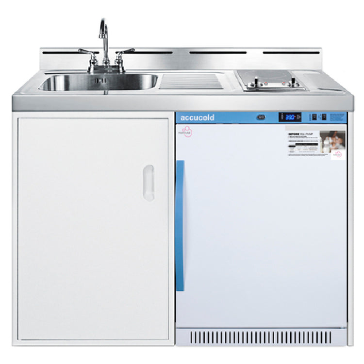 Summit C48ELMCLK All-in-One Kitchenette 47.25"W X 24"D X 40"H One Piece Stainless Steel Top With Deep Drawn Sink