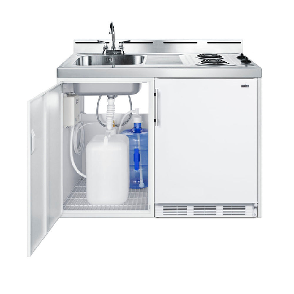 The Summit CKPUMPKIT Complete Water Pump Kit - 6 Gallon Waste Container Included - 5 Gallon Water Jugs (ships Empty) is a versatile solution engineered for efficient water management in various commercial settings. This kit comes complete with a 6-gallon waste container, providing ample capacity for waste water management, and includes space for 5-gallon water jugs, though they are shipped empty to reduce shipping weight and cost. The key feature of this kit is the easy-to-install 110V pump system, designed for seamless integration into existing systems with all necessary hardware included, ensuring a straightforward installation process. This water pump kit is ideal for diverse industry applications, from food service operations to medical facilities, where reliable and efficient water management is critical. Its robust construction and thoughtful design make it a reliable choice for businesses seeking to optimize their water handling systems, offering both practicality and performance. The Summit CKPUMPKIT is distinguished by its comprehensive approach to addressing water distribution and waste management needs, making it an essential tool for maintaining effective operations in environments where water use is a daily necessity.