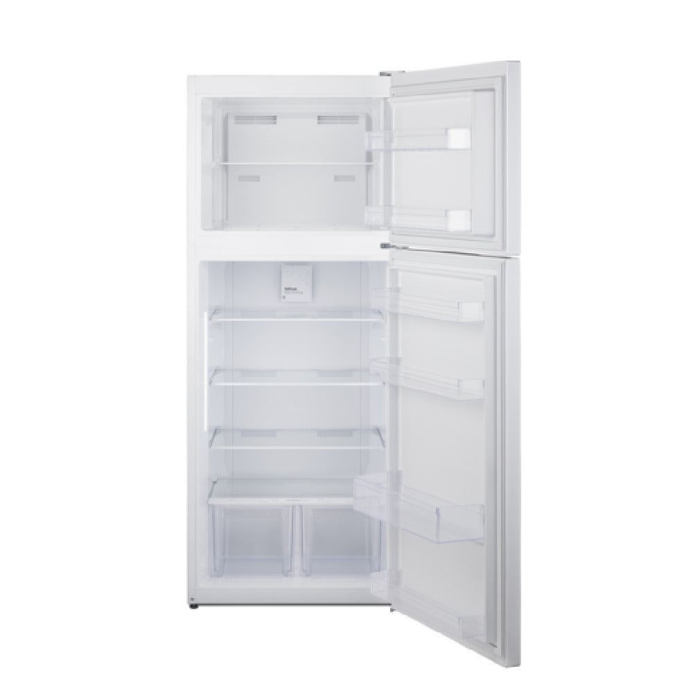 Summit Commercial, CTR151W, Refrigerator-Freezer, 28" W, frost-free, 14.3 cu.ft. capacity, top mount self-contained refrigeration, digital temperature control, superFreeze function, (4) adjustable glass shelves, (4) full door shelves, gallon door storage, ice tray included, two humidity-controlled clear crispers, classic white exterior, reversible doors, interior lighting, sealed back, R600a hydrocarbon refrigerant (CARB compliant), 115v/60/1-ph, 1.84 amps, UL, UL-Canada, ENERGY STAR® (Residential)