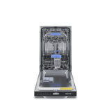 The Summit DW185SSADA Built-in Dishwasher 18"W ENERGY STAR certified model is a premium appliance designed for both residential and commercial kitchens needing efficient dishwashing solutions. With a compact 18-inch width, it is ADA compliant, ensuring accessibility for all users. This dishwasher operates at a quiet 47 dB, making it suitable for noise-sensitive environments. It features a stylish stainless steel interior and exterior, complemented by a curved handle in brushed stainless steel. The dishwasher includes two gliding racks, with the top rack having side pieces for securing tall glasses, and a lower rack with foldable tines to accommodate larger items. The removable cutlery basket adds convenience for organizing utensils. It offers 8 wash programs - Regular, Auto, Intensive, Intensive Plus, Daily, Delicate, Super, and Rinse - and 5 auxiliary functions - Sanitize, Extra Fast, Extra Dry, Hi-Temp, and Half Load. Digital top controls and dual spray arms enhance its technological appeal, alongside features like detergent dispenser, automatic detergent detection, and overflow warning. The adjustable height and pre-installed power cord with a 3-pronged plug underscore its user-friendliness. UL and ULC residential certifications confirm its safety and reliability, making it a versatile choice for various market segments.