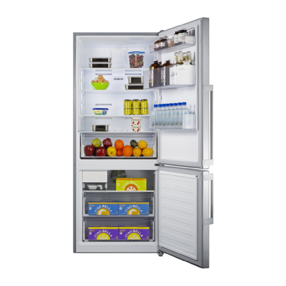 The Summit FFBF284SSIM Full Size Bottom Freezer Refrigerator is an ENERGY STAR certified appliance with a 14 cu.ft. interior, designed for optimal efficiency in both residential and commercial environments. This refrigerator features a counter depth design, making it suitable for kitchens seeking a sleek, built-in look. It is equipped with digital thermostats for precise temperature control and a reversible, stainless steel door with a smudge-resistant coating, ensuring easy maintenance and longevity. The frost-free function and high temperature and open door alarms provide enhanced convenience and safety. Inside, the refrigerator offers three adjustable glass shelves, three full door shelves, and a gallon door shelf for versatile storage options, complemented by LED lighting for clear visibility. The freezer section includes two transparent drawers and a factory-installed icemaker for added functionality. Its ultra-quiet operation and Sabbath mode cater to diverse user needs, while its compliance with CARB and the California Health and Safety Code 116876, as per NSF/ANSI/CAN 61-2022 standard, underlines its commitment to safety and environmental standards. The R600a refrigerant ensures this unit is 100% CFC-free, making it a responsible choice for eco-conscious consumers. Certified by UL and ULC, this refrigerator embodies a blend of style, functionality, and compliance.