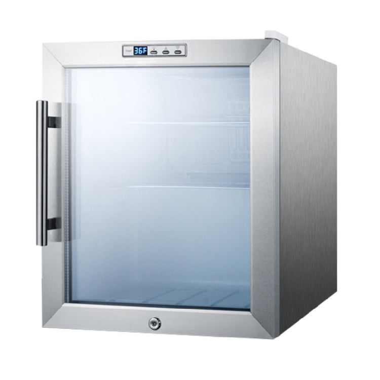 Summit SCR215LCSS Compact All-Refrigerator 1.7 Cu. Ft. Capacity Double Pane Tempered Glass Door With Stainless Steel Trim
