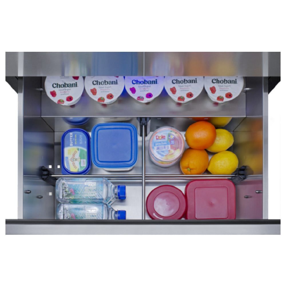 The Summit SPR275OS2D All-refrigerator 27" Wide Shallower Depth (23.25" Deep) is a versatile refrigeration solution tailored for both residential and commercial settings. With a compact 23.25" depth, it provides a space-efficient design ideal for kitchens with limited room. The unit boasts a 4.83 cu.ft. capacity within its two stainless steel drawers, which can accommodate custom panels for personalized aesthetics. The temperature range is adjustable between 34 and 65°F, catering to a wide variety of chilling requirements. The refrigerator's adaptable installation options allow for built-in or freestanding placement, while its robust construction supports both indoor and outdoor usage. This model is equipped with advanced digital controls, LED lighting, and a frost-free system, ensuring ease of use and energy efficiency. Additional features include a removable divider, sabbath mode, and an open drawer alarm for enhanced convenience. Environmentally conscious, the SPR275OS2D utilizes R600a hydrocarbon refrigerant, is 100% CFC free, and complies with CARB standards. The product operates on 115V/60 Hz power and meets ETL, ETL-C, and ETL-S (Commercial - Residential) certifications, reflecting its commitment to safety and performance. This refrigerator is a reliable choice for those seeking efficient cooling solutions without compromising on style or functionality.