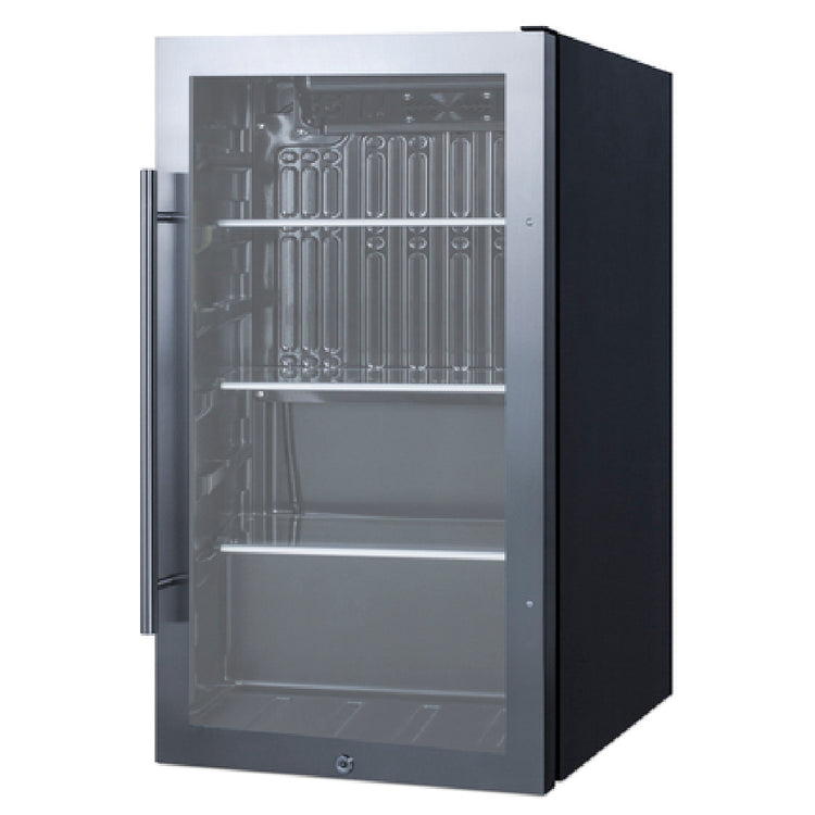 The Summit SPR488BOSADA Indoor/Outdoor Undercounter Refrigerator is a versatile one-section unit that can be seamlessly integrated into built-in or freestanding installations, making it ideal for various commercial environments. Measuring 19 inches in width and offering a capacity of 3.13 cubic feet, this refrigerator is designed to fit into compact spaces while providing ample storage. The rear-mounted self-contained refrigeration system ensures efficient cooling, while the automatic defrost feature minimizes maintenance efforts. It features a reversible right-hinged glass door equipped with a locking mechanism and a stainless steel handle for security and easy access. Inside, the unit is illuminated by LED lighting that enhances visibility and uses a dial thermostat for precise temperature control. The three adjustable glass shelves maximize storage flexibility, while the sealed back and sturdy black sides contribute to its robust construction. For added stability, leg levelers are included, and the right-angle plug allows for convenient electrical connections. Operated at 115v/60/1-ph and 1.3 amps, it meets cETL, ETL, and ETL-Sanitation standards, ensuring compliance with industry regulations. Additionally, it is ADA Compliant, broadening its appeal for businesses seeking accessibility-friendly solutions. This refrigerator is a reliable choice for operators seeking efficiency and durability in diverse settings.