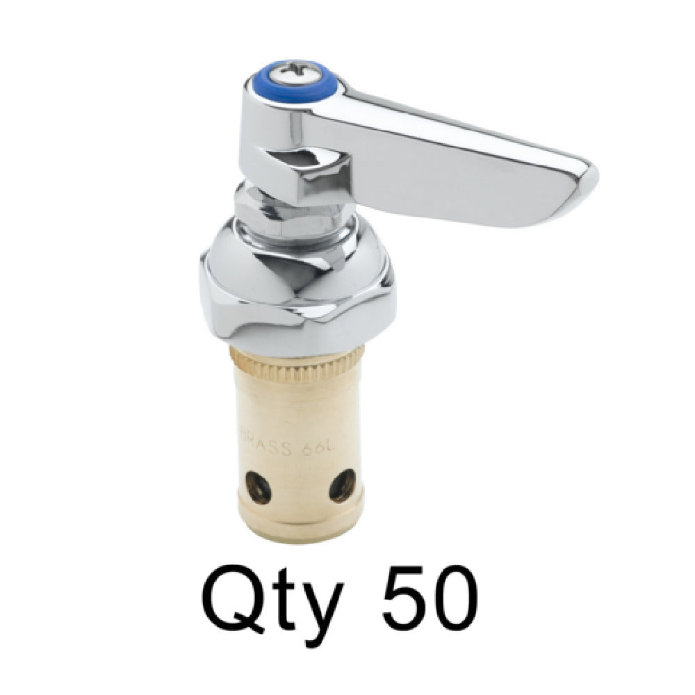 The T&S Brass 002711-40M50 Eterna Spindle Assembly - Spring Check - Left Hand is a precision-engineered component designed for specific industrial applications, particularly within plumbing systems. This spindle assembly is tailored with a left-hand orientation, ensuring compatibility with setups requiring such a configuration. It features a spring check mechanism, which is critical in preventing backflow and ensuring a one-directional flow of liquid, thereby maintaining system efficiency and safety. The designation of "Cold" indicates its application in cold water lines, making it essential for temperature-specific installations. This product is packaged with a quantity of 50 per case, ideal for bulk installations or large-scale projects. The T&S Brass Eterna series is renowned for its durability and reliable performance, making it a preferred choice for professionals in the plumbing industry. Its precision construction ensures a tight seal and smooth operation, reducing maintenance needs and enhancing the lifespan of the plumbing system. This assembly is particularly valuable to markets that demand high-quality, reliable components for critical systems, such as healthcare, hospitality, or food service industries, where the integrity of water systems is paramount. The T&S Brass 002711-40M50 stands out for its specific features that cater to specialized plumbing requirements.