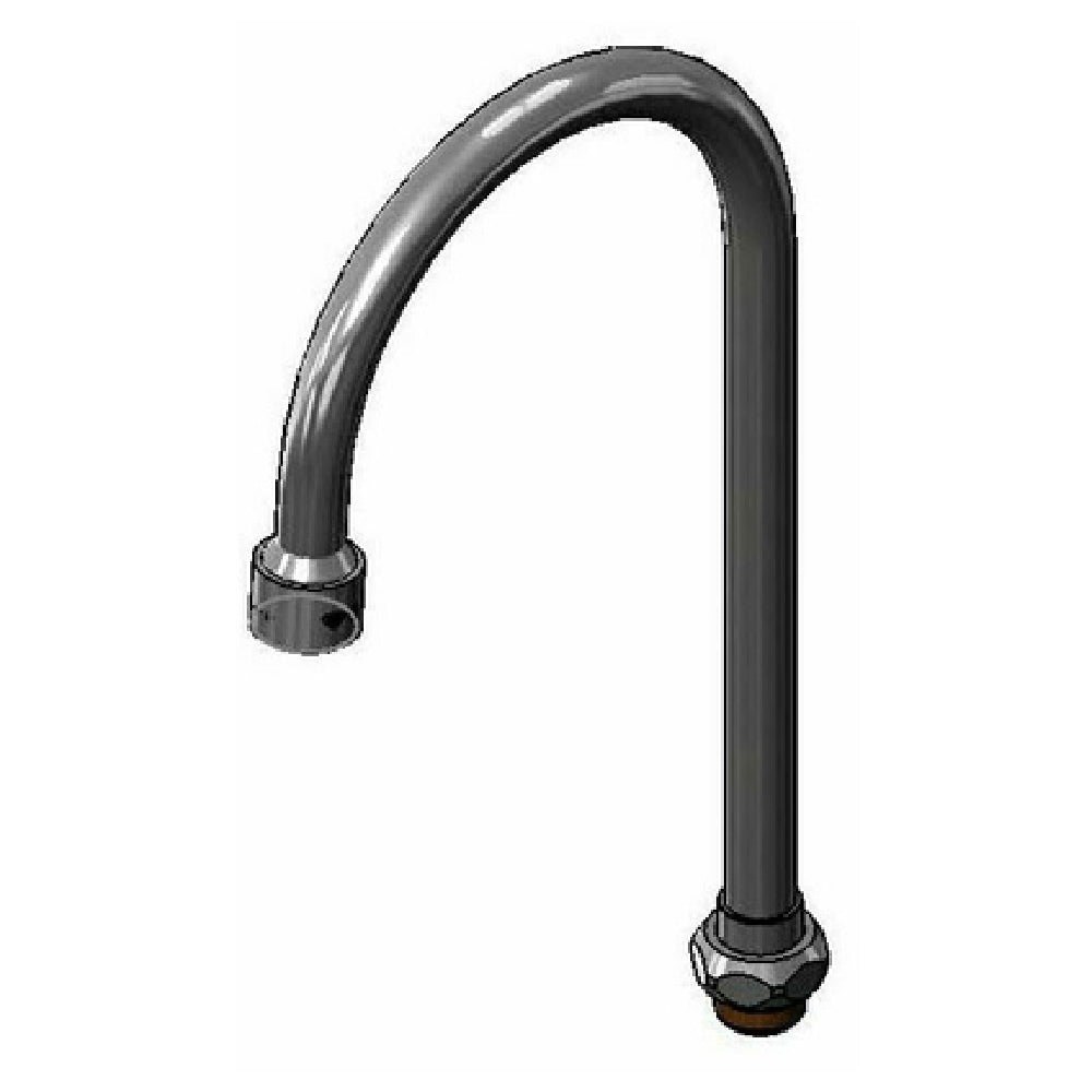 The T&S Brass 020036-40 Equip Nozzle is a highly functional plumbing component distinguished by its 5-3/4 inch swivel gooseneck design, facilitating versatile use in various commercial applications. Engineered with a 2.2 GPM vandal-resistant aerator, this nozzle is optimized for water conservation while providing a steady, reliable stream. Its construction from chrome-plated brass not only ensures durability and a professional appearance but also maintains a low lead content, aligning with health and safety standards. Certified by cCSAus, this product meets rigorous quality and safety benchmarks, making it suitable for a range of environments, from institutional settings to high-traffic public restrooms. The T&S Brass 020036-40 is particularly valued in industries where durability and reliability are paramount, such as hospitality, healthcare, and educational facilities. Its design offers both aesthetic appeal and practical benefits, ensuring long-lasting performance and compliance with contemporary standards. This combination of features makes it an excellent choice for those seeking a robust, efficient faucet solution that marries form with function in demanding use scenarios.