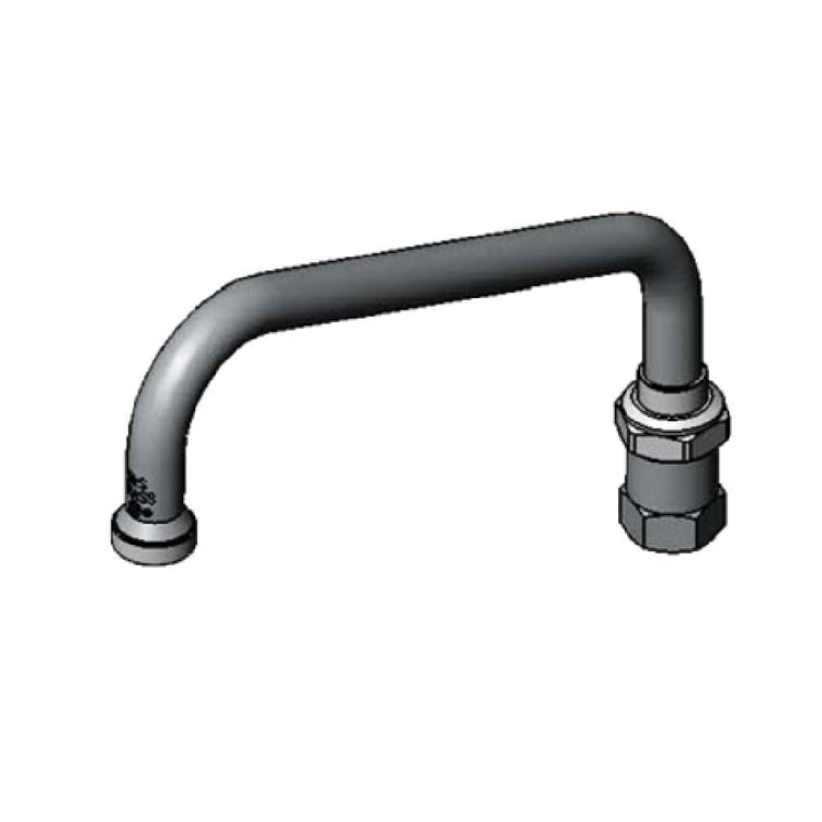 The T&S Brass 080X Nozzle Swivel 8" Long is a precision-engineered component designed for use in various plumbing and industrial applications where flexibility and reliability are paramount. This nozzle features an 8-inch length and is equipped with a standard stream regulator outlet, ensuring optimal flow and performance. The inclusion of a swivel body - 054X enhances its versatility, allowing for smooth rotational movement, which is essential in environments requiring frequent angle adjustments. The nozzle is constructed with a 3/8" female NPT connection, providing compatibility with a wide range of piping systems. Notably, the 080X model is designed with low-lead compliance, meeting stringent safety standards for clean and safe water delivery. The combination of these specifications makes the T&S Brass 080X Nozzle an indispensable tool for professionals in sectors such as food service, healthcare, and manufacturing, where precise fluid control and adherence to safety regulations are critical. Its robust construction ensures durability and longevity, making it a cost-effective solution for businesses seeking reliable plumbing components. This nozzle exemplifies T&S Brass's commitment to quality and innovation, catering to the diverse needs of various industry segments with its exceptional technical attributes.