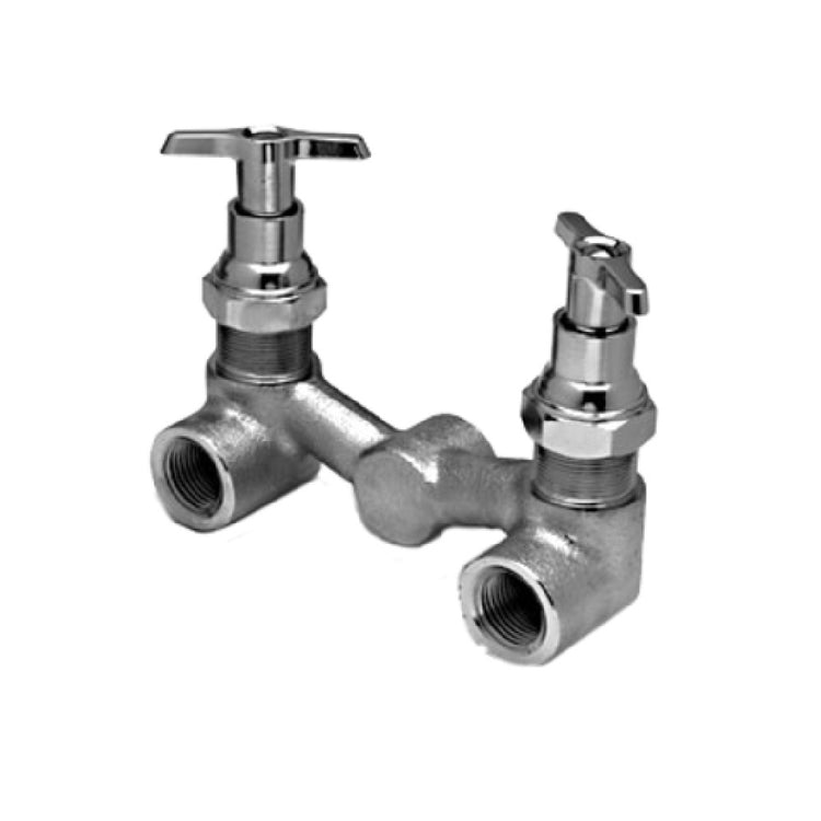 The T&S Brass 0RK1 Mixing Control Valve is a wall-mounted fixture engineered for precision and durability, making it a reliable choice for various industrial and commercial applications. Designed with a concealed body and standardized 4-inch centers, this valve offers a seamless integration into any setup requiring precise water control. It is equipped with removable loose key T-handles, providing ease of adjustment and maintenance, a valuable feature for environments that demand regular operational changes. The valve features a 1/2-inch female NPT connection at the bottom and a 3/8-inch female NPT connection at the top, ensuring compatibility with a wide range of piping systems. These precise specifications make the 0RK1 Mixing Control Valve particularly useful in sectors where fluid control is critical, such as in hospitality, healthcare, and food service industries. The construction of this valve prioritizes both functionality and durability, ensuring long-term performance and reliability. Whether for new installations or replacements, the T&S Brass 0RK1 Mixing Control Valve stands out as an essential component in any system that requires consistent and precise water flow management.