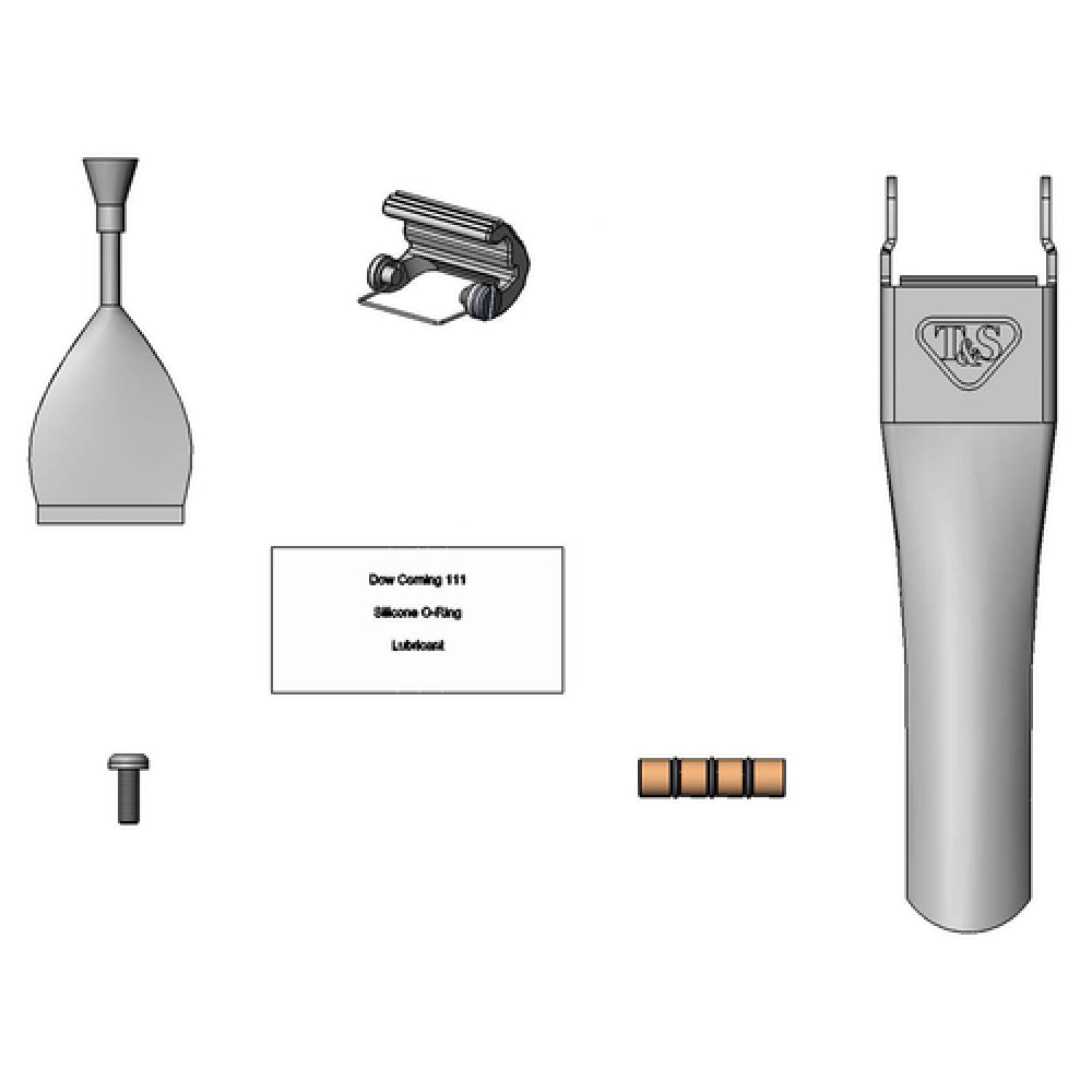 The T&S Brass 108T-RK Trigger Repair Kit is a comprehensive solution designed for maintaining and enhancing the functionality of spray valves in a variety of professional settings. This kit includes essential components such as a stainless steel trigger, ensuring durability and longevity under frequent use. The inclusion of a spring trigger catch and screw provides reliable performance, while two additional screws offer secure assembly. The pivot pin included in the kit facilitates smooth operation of the trigger mechanism, contributing to the overall efficiency and ease of use. To ensure a secure fit and prevent loosening during operation, the kit comes with a loctite adhesive. The silicone O-ring included acts as an effective sealant, preventing leaks and maintaining optimal operation of the spray valve. Additionally, the kit features lubricant to minimize friction and prolong the life of the moving parts. The T&S Brass 108T-RK Trigger Repair Kit is particularly useful for industries that require regular and rigorous use of water dispensing equipment, such as commercial kitchens and food service operations, providing a reliable solution for maintaining equipment performance and extending their service life.