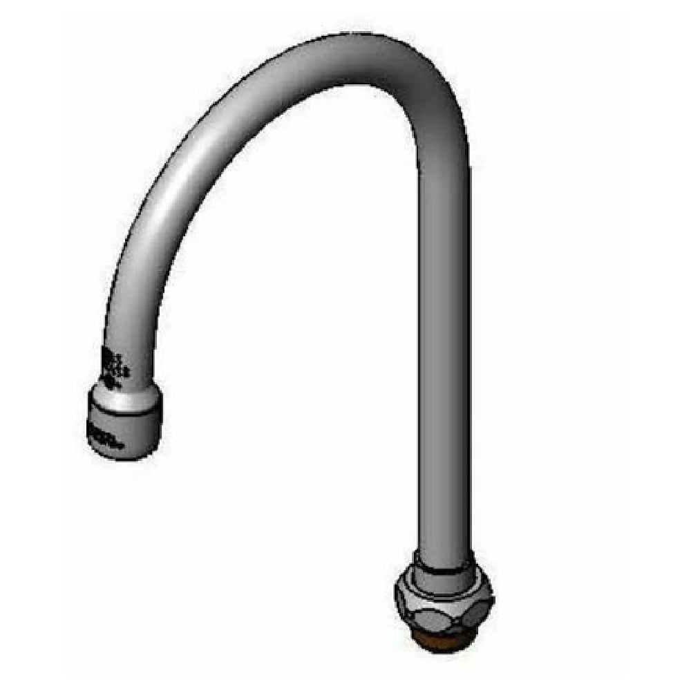 The T&S Brass 133X-A15 Nozzle Swivel 10-5/16"H is a versatile component designed for a wide range of industrial applications. Standing at 10-5/16 inches in height, this nozzle incorporates a 5-3/4 inch spread, ensuring ample reach and flexibility in use. The gooseneck design is a significant feature, allowing for a high degree of maneuverability, which is essential for tasks requiring precision and control. This nozzle delivers a flow rate of 1.5 gallons per minute (GPM), catering to both efficiency and conservation needs. Its construction adheres to low lead standards, making it compliant with stringent safety regulations and suitable for environments where lead exposure is a concern. Certified by NSF, the T&S Brass 133X-A15 guarantees adherence to public health and safety guidelines, making it a reliable choice for food service establishments, laboratories, and other professional settings where compliance is crucial. The swivel mechanism allows for 360-degree rotation, providing enhanced flexibility and ease of use. This nozzle is a perfect fit for those requiring a combination of durability, regulatory compliance, and operational efficiency in their water dispensing fixtures.